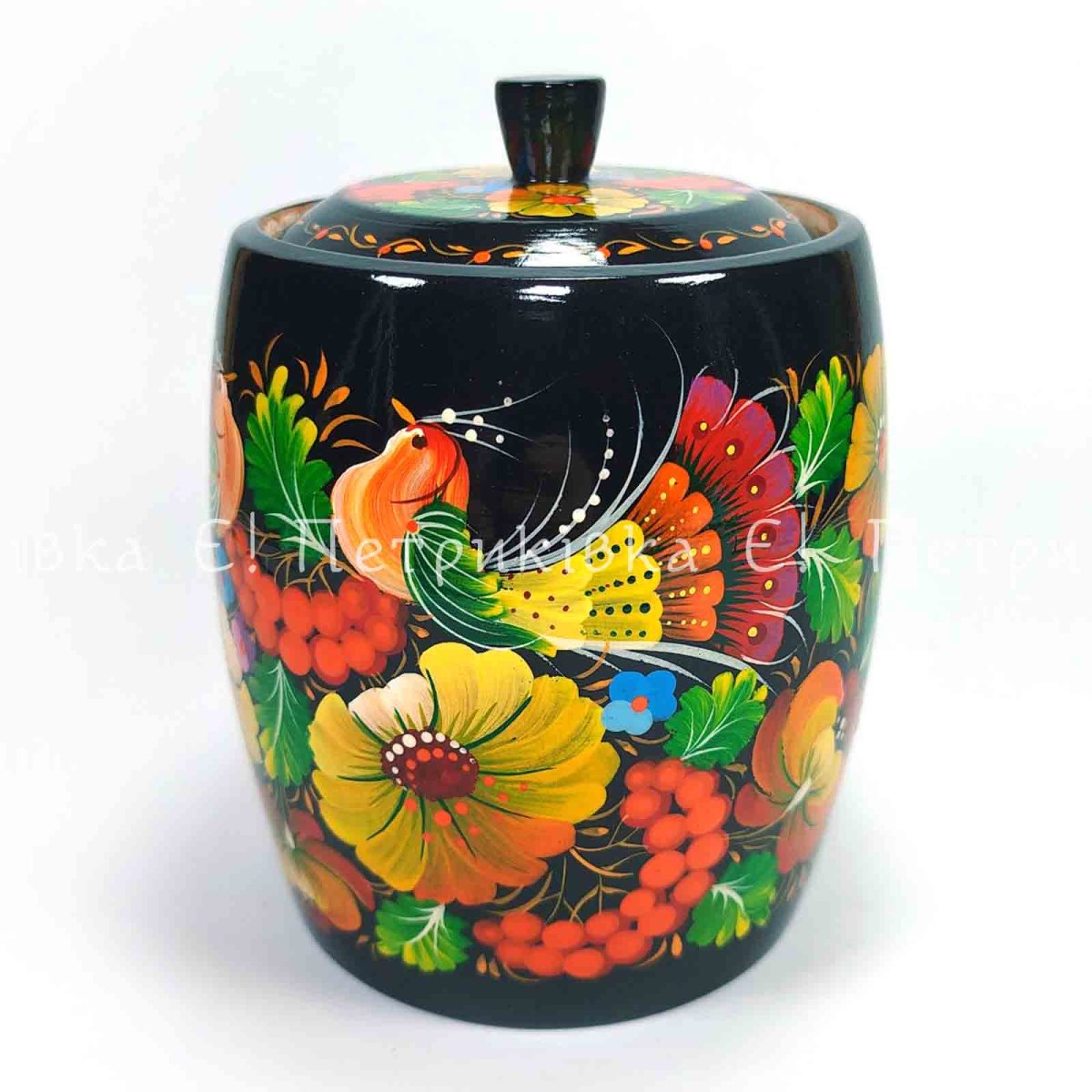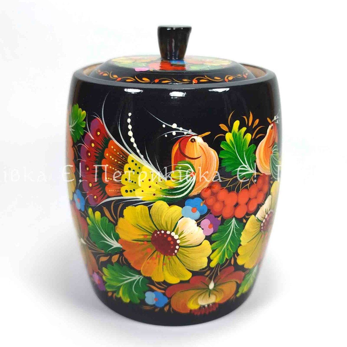 Цукерниця велика (ємність для сипучих) з Петриківським розписом "Дві пташки у квітах"