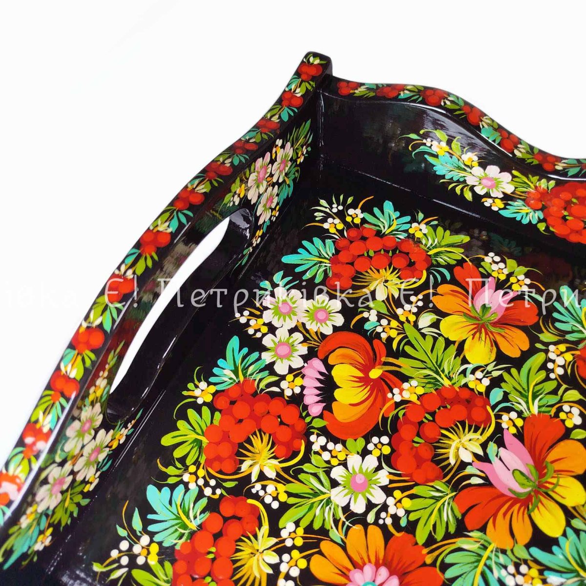 Піднос (таця) з Петриківським розписом "Букет Петриківки" діаметр 50.5 см