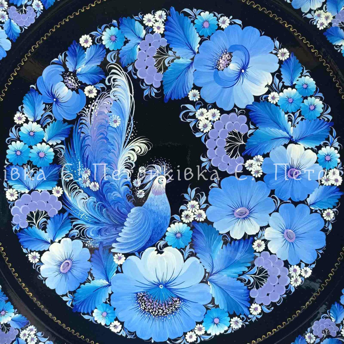 Піднос (таця) з Петриківським розписом "Зимова казка # 2" діаметр 45,5 см