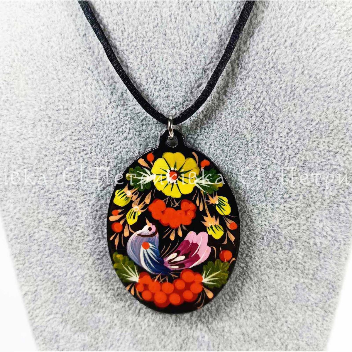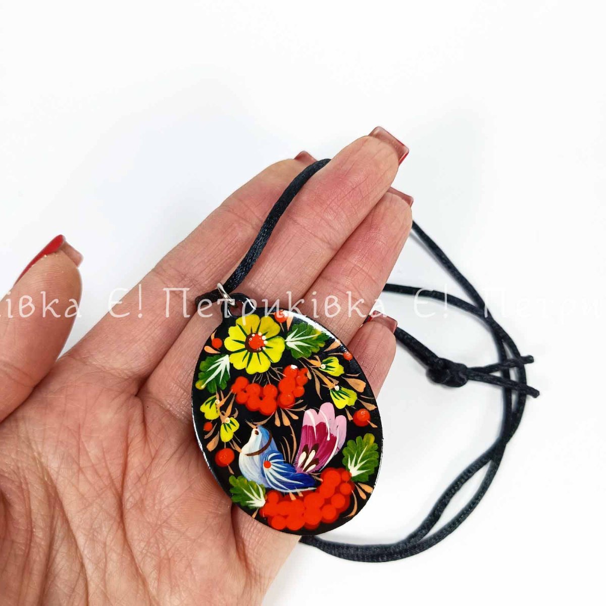 Кулон с Петриковской росписью. С двух сторон одинаковый рисунок. Высококачественная берёзовая фанера, качественная фурнитура. Гуашевые краски, три слоя глянцевого лака