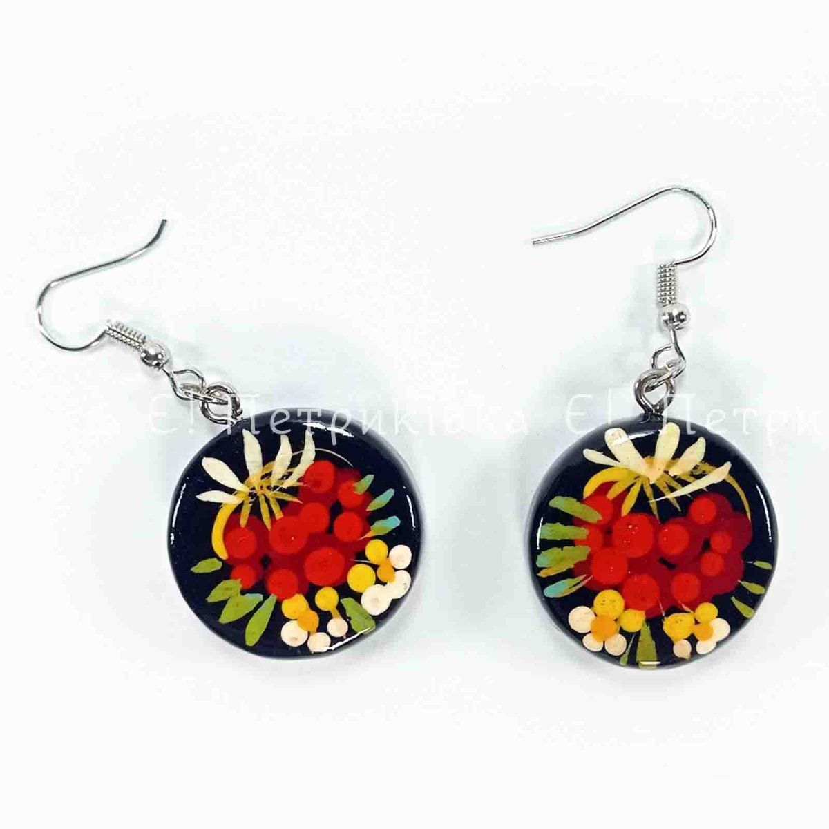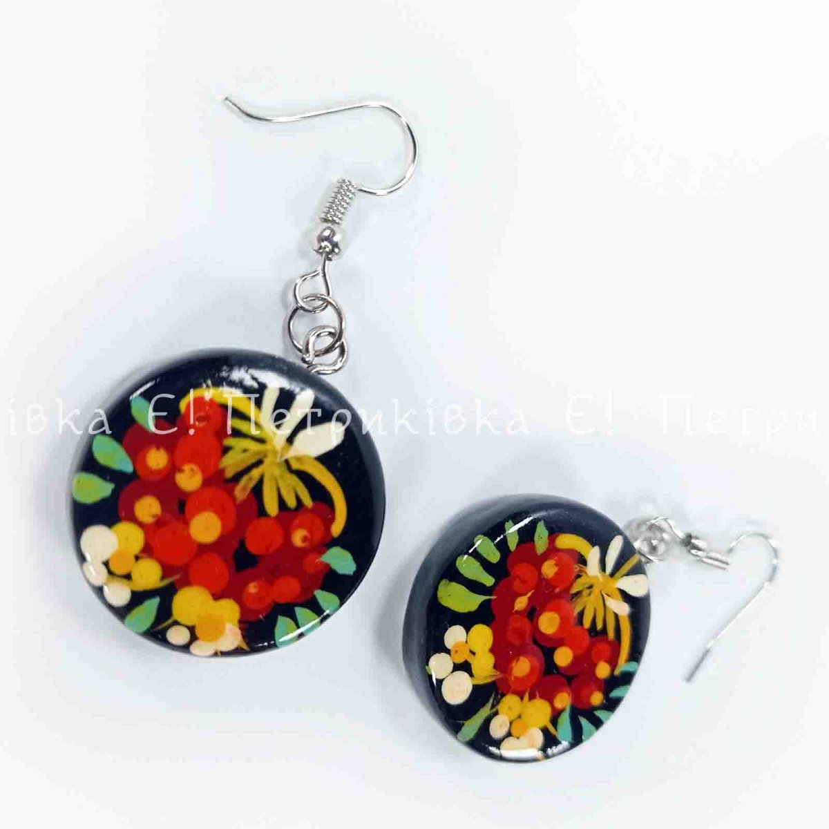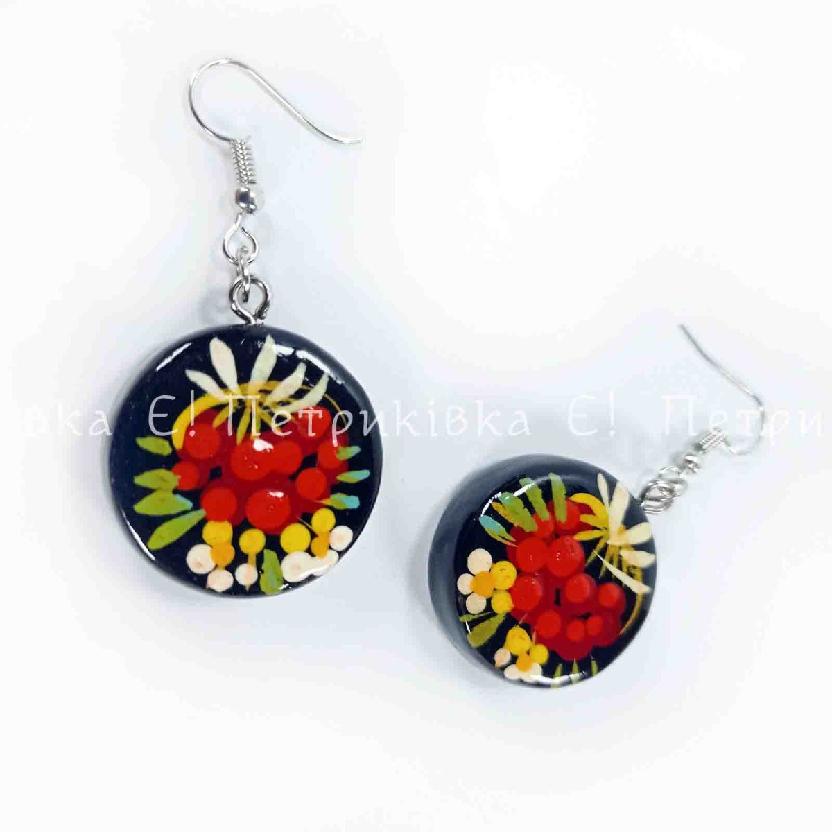 Серьги вручную расписаны петриковской росписью. Роспись с двух сторон