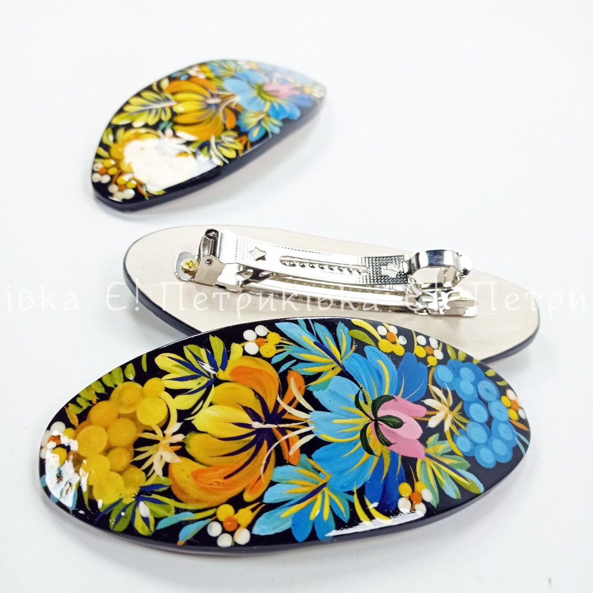 Заколка-автомат с Петриковской росписью "Украинская"