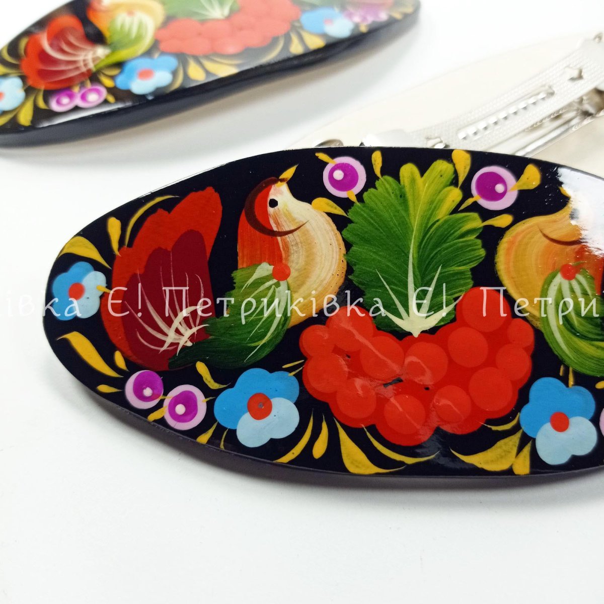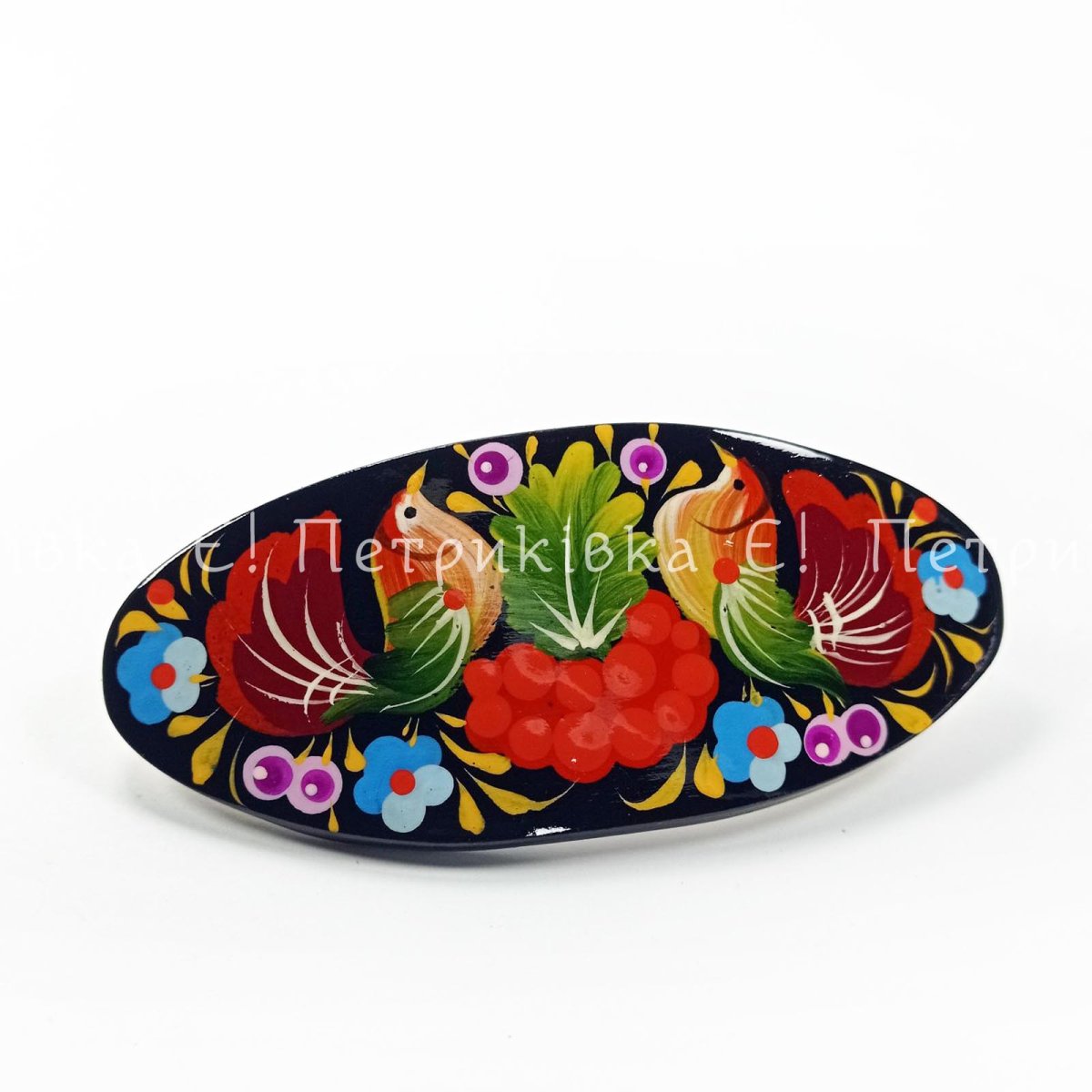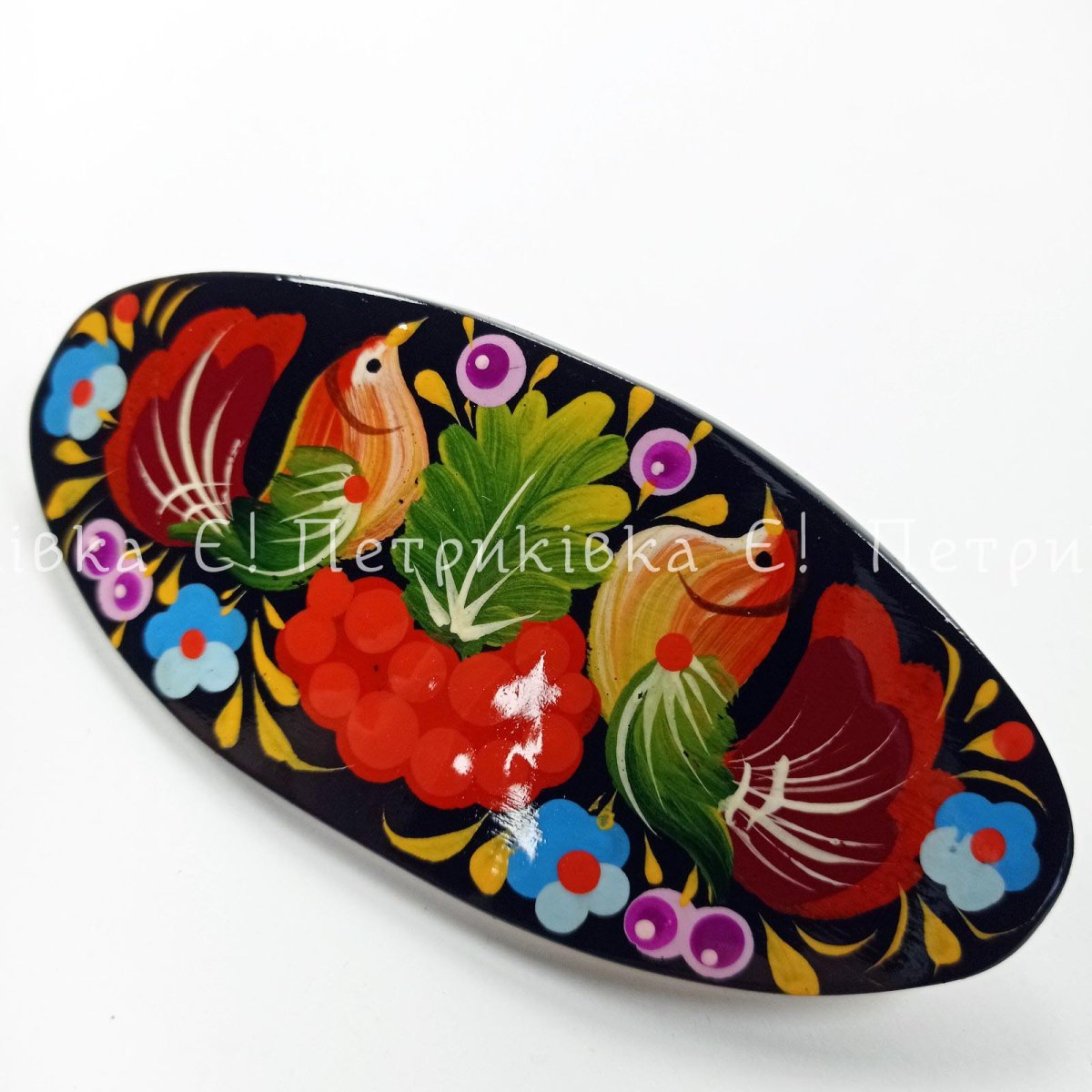 Заколка-автомат с Петриковской росписью "С птичками"