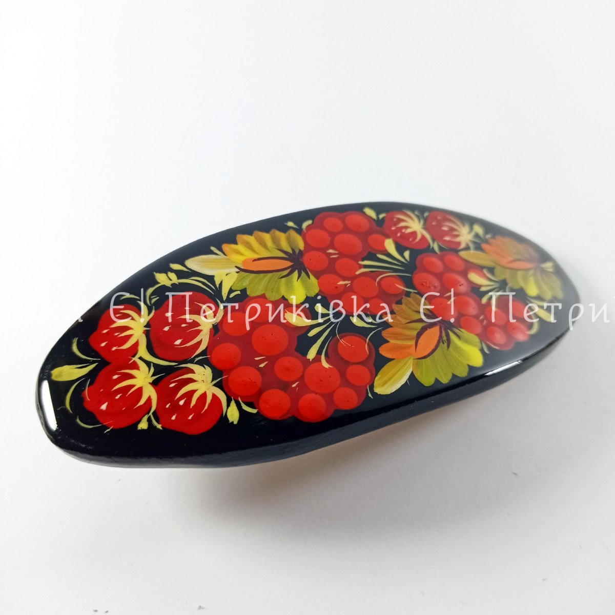 Заколка-автомат "Калина с клубничкой" Петриковская роспись