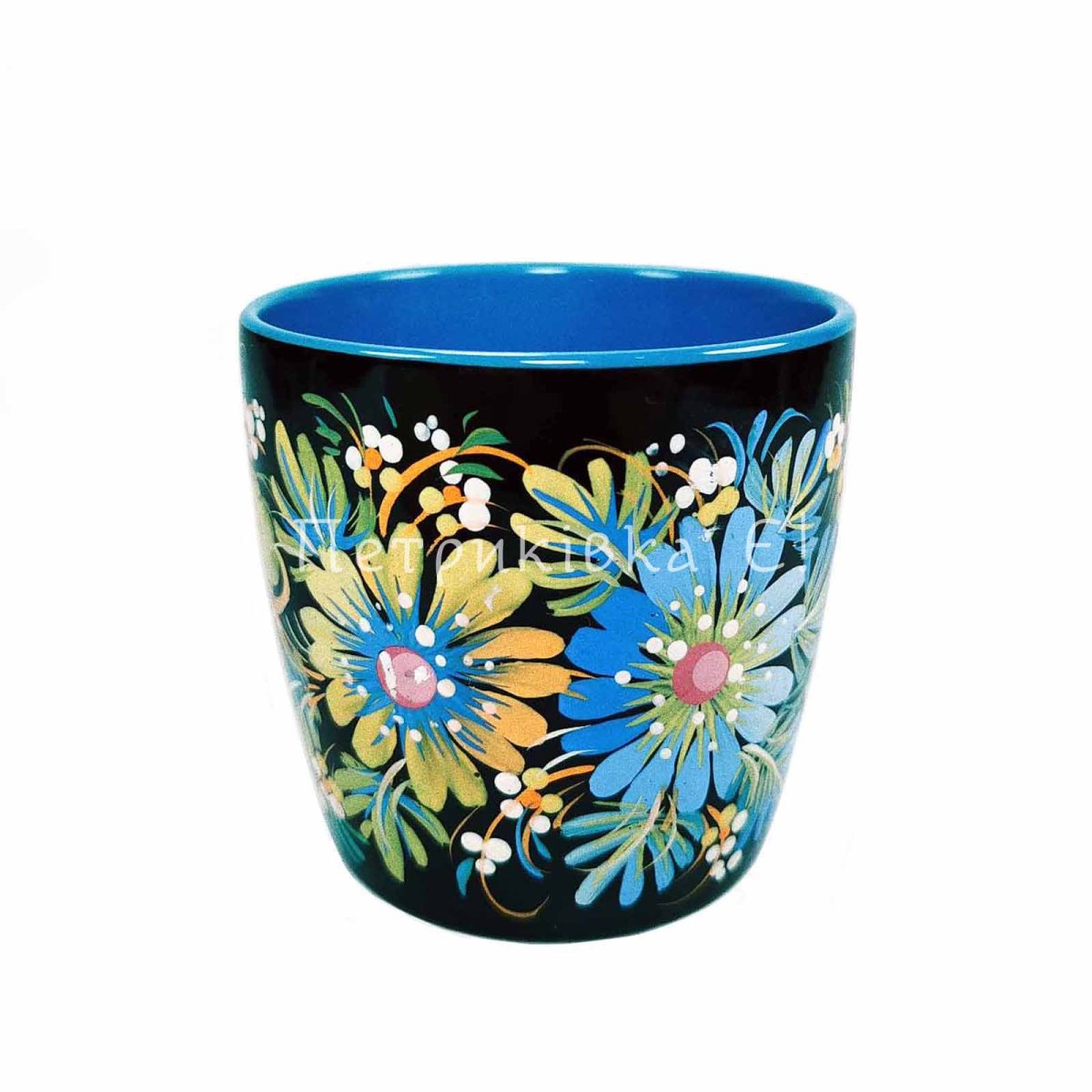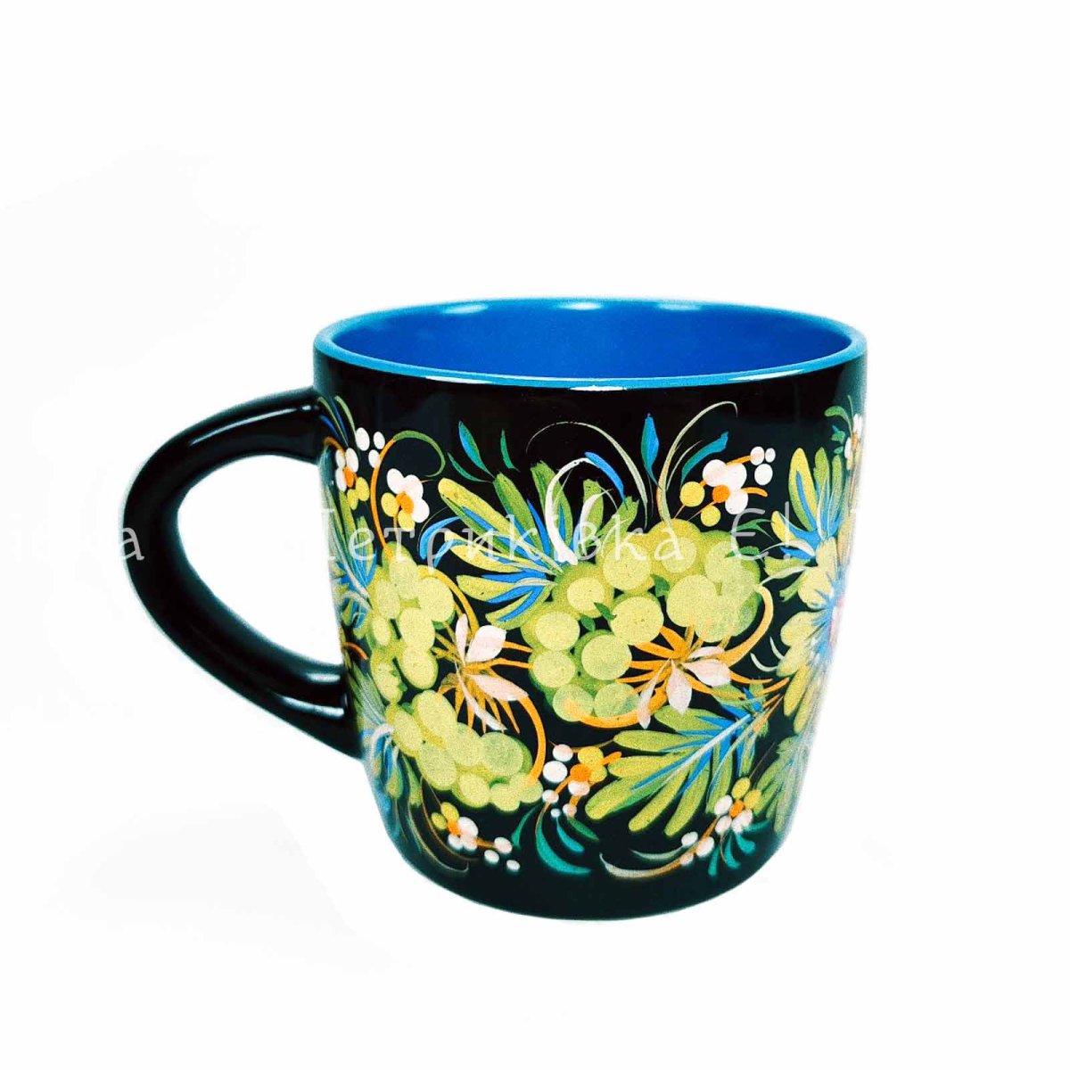 С одной стороны чашки узор в синих тонах, с другой - в жёлтых.