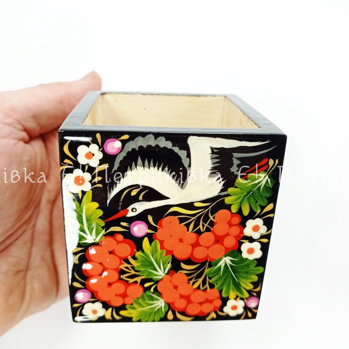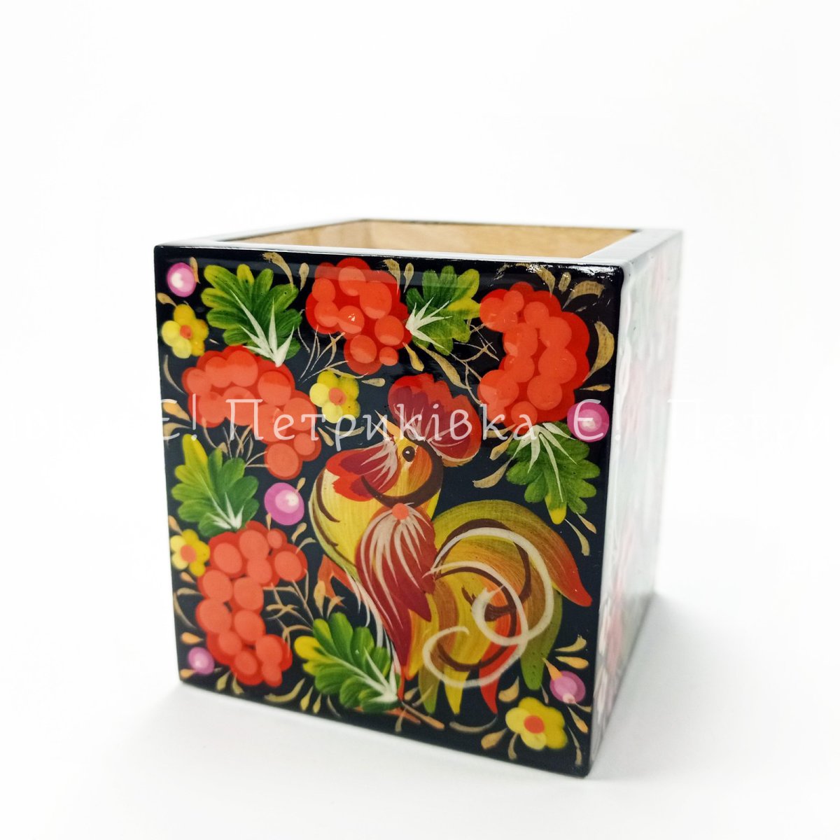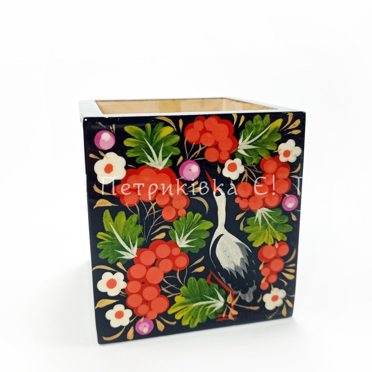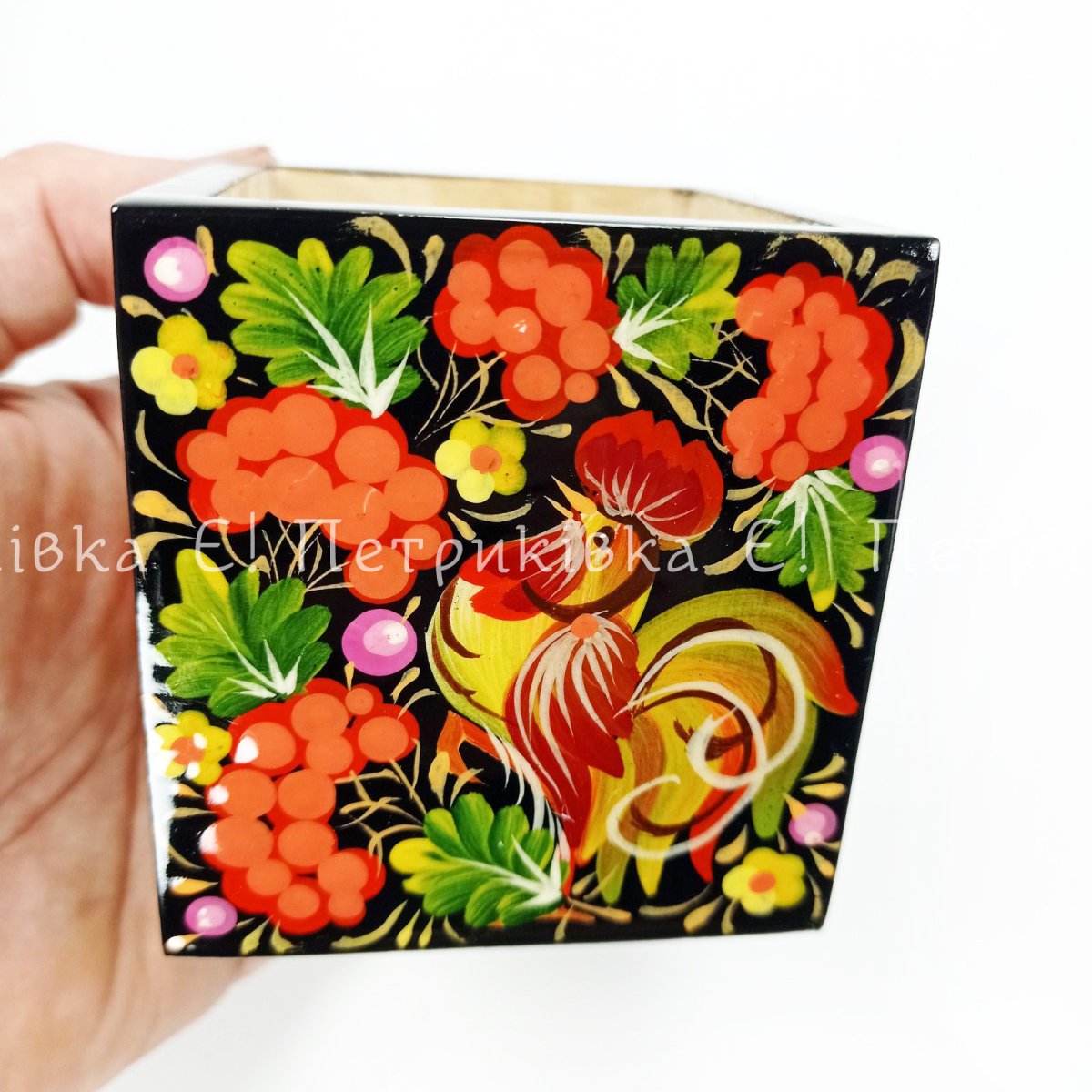 Карандашница с Петриковской росписью (7х7х7 см)