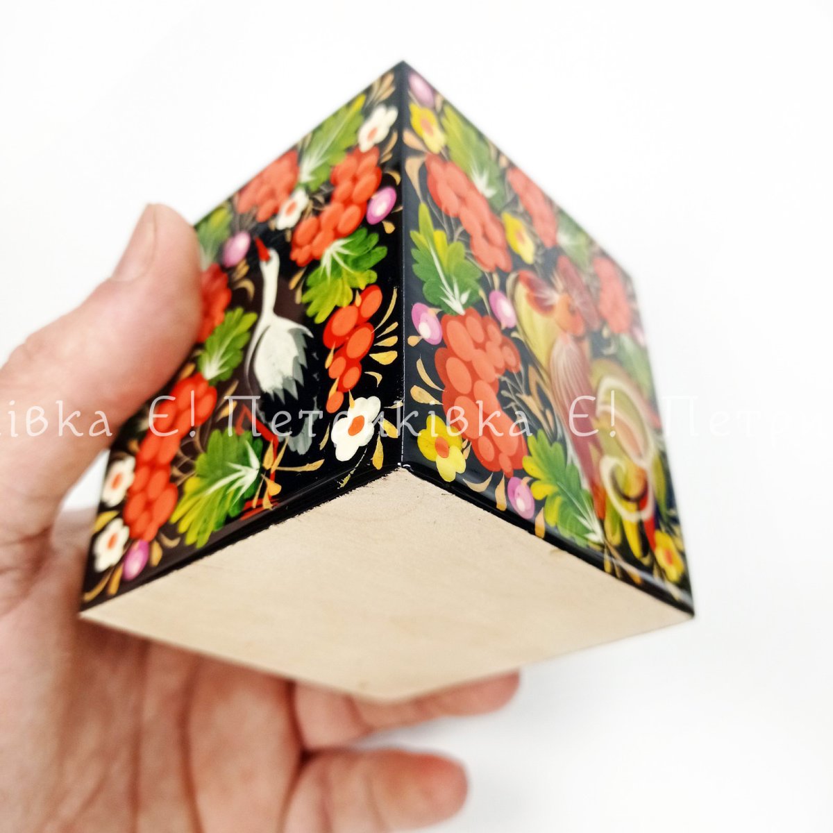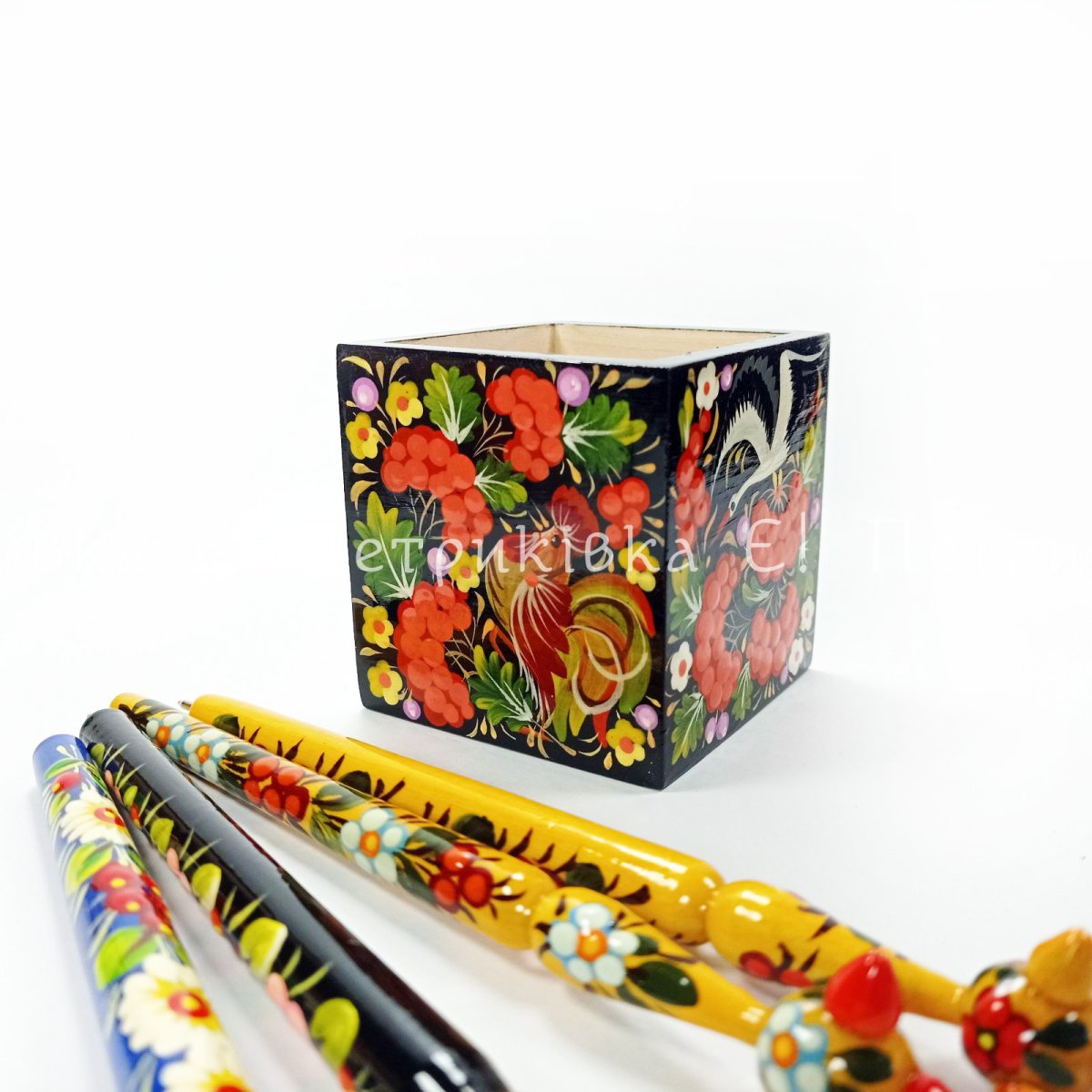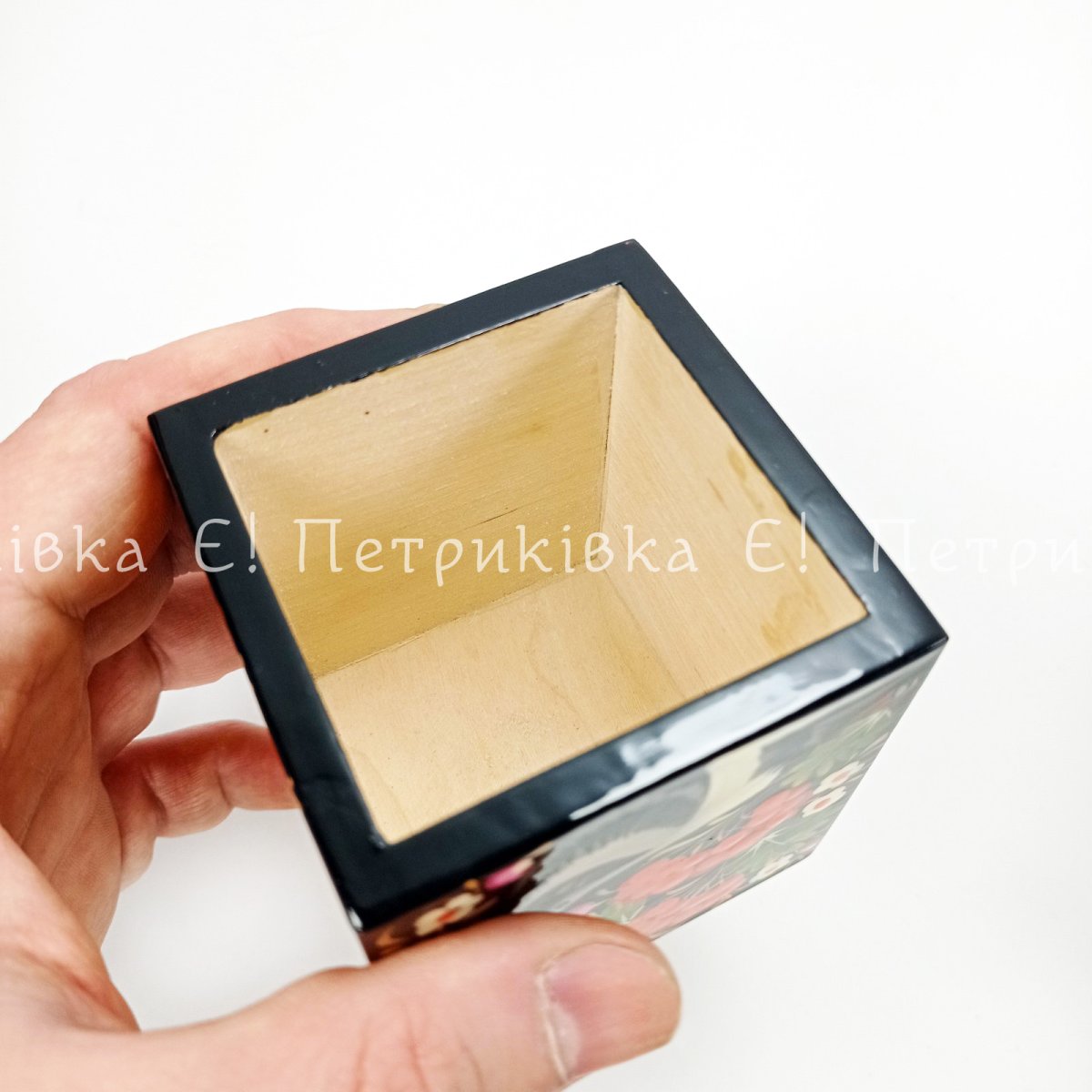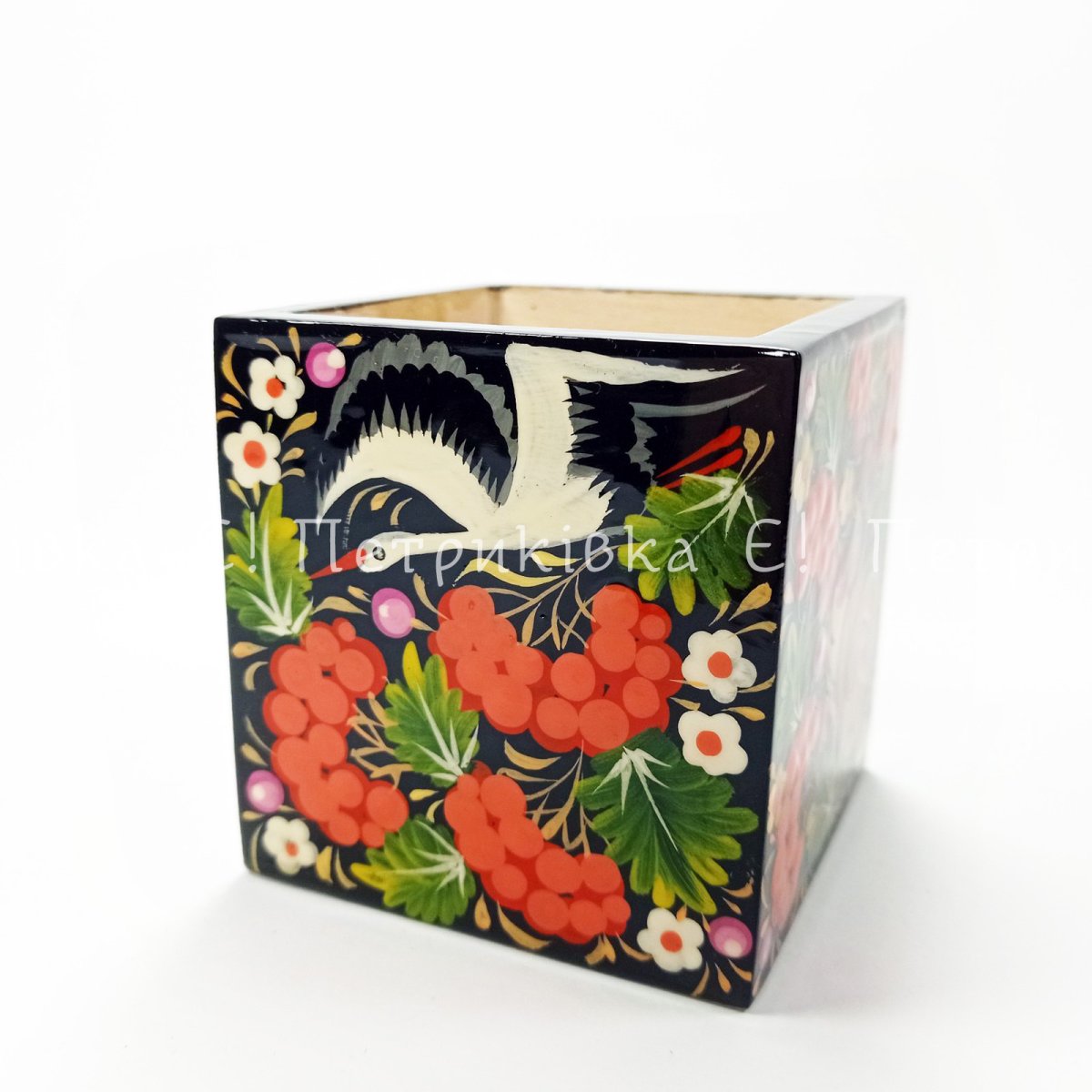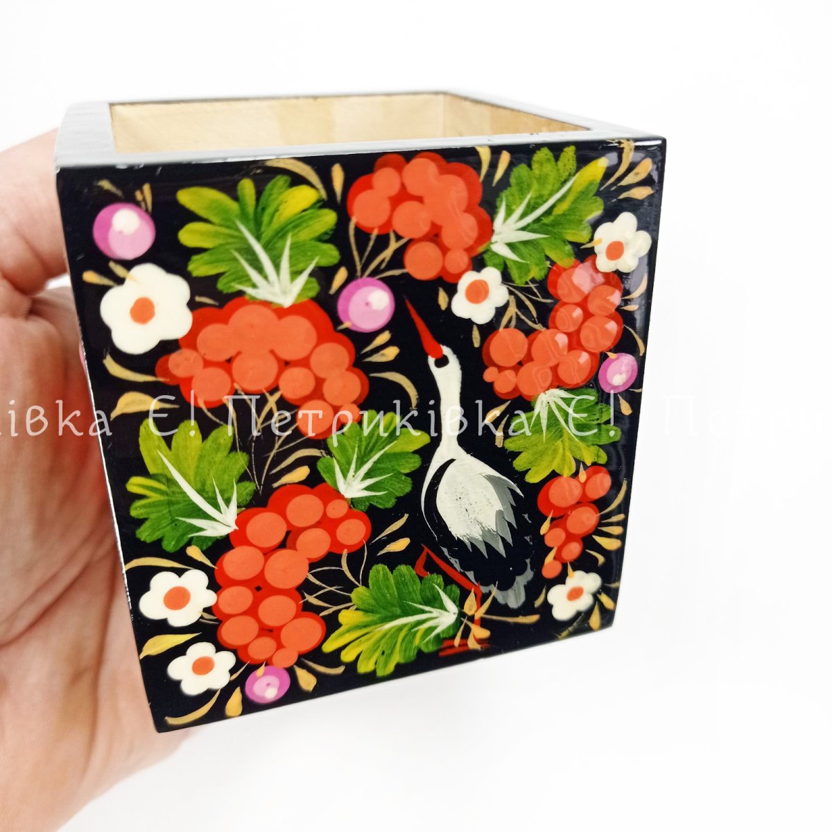 Карандашница с Петриковской росписью (7х7х7 см)
