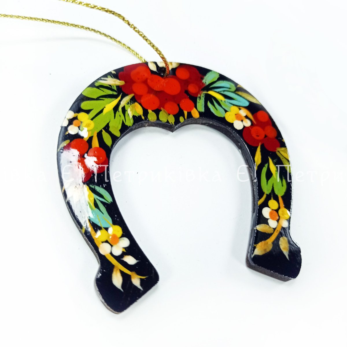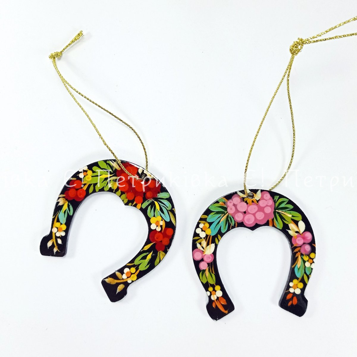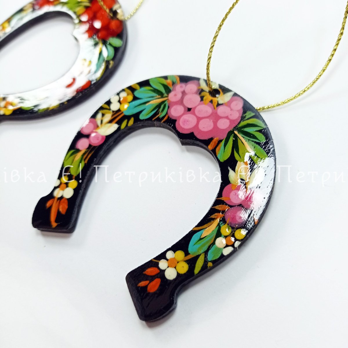 Подвеска с двусторонней росписью. На одной стороне - красная калина, на другой - розовая.