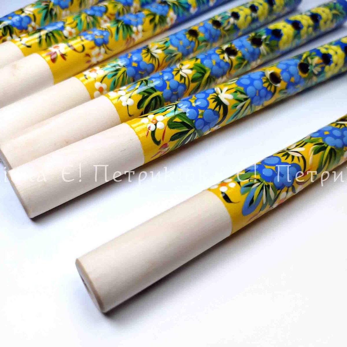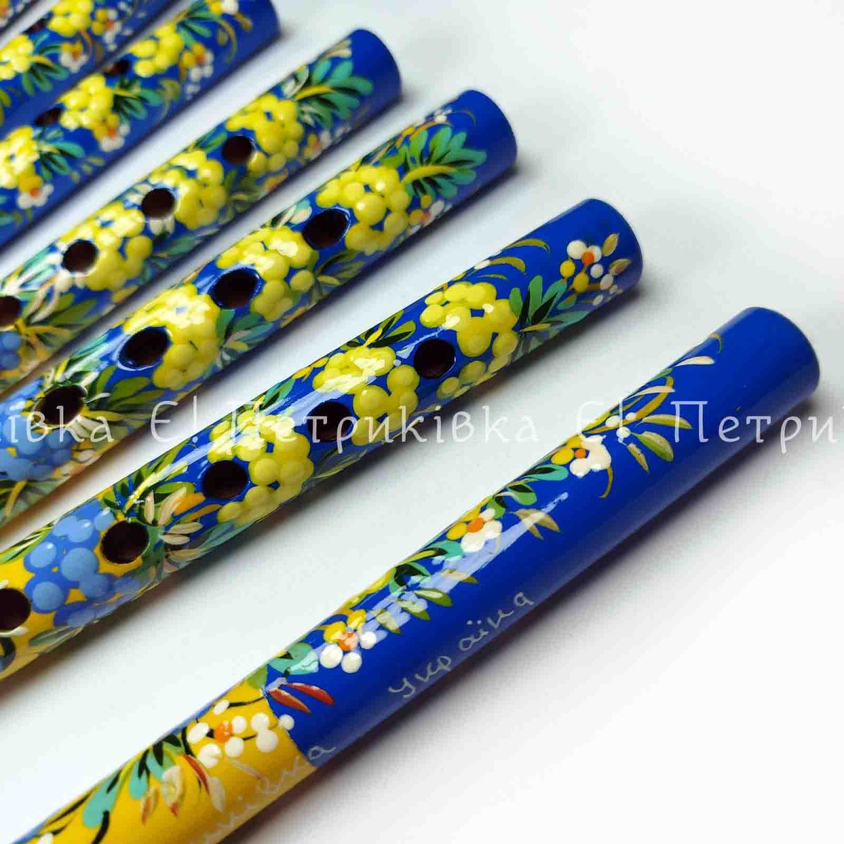 Дудочка с Петриковской росписью длиной 25 см.