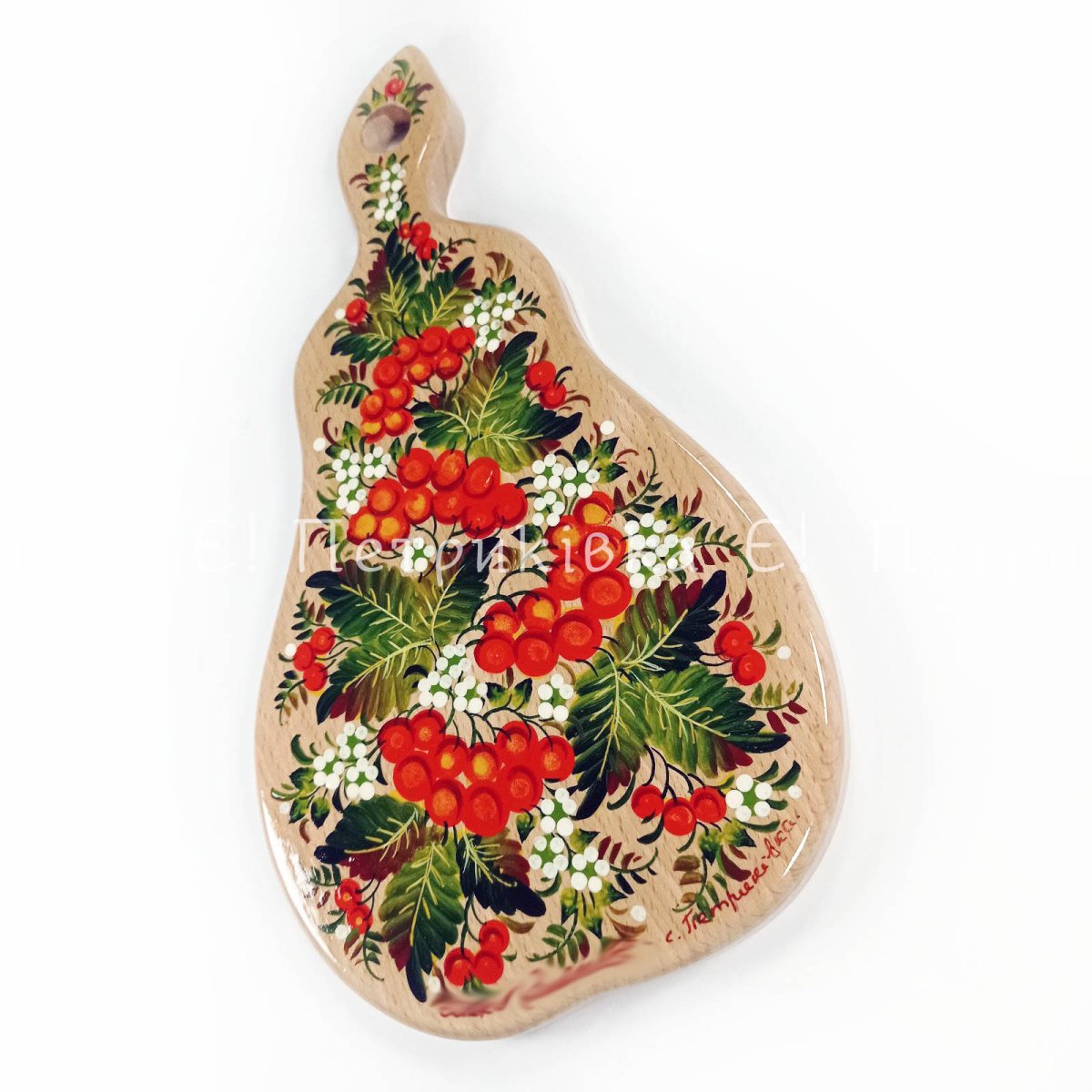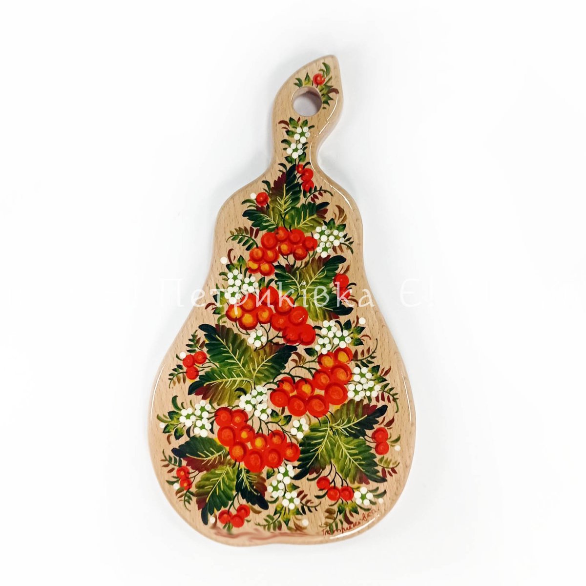 Доска грушка малая (26х14 см) с Петриковской росписью "Классическая" по дереву
