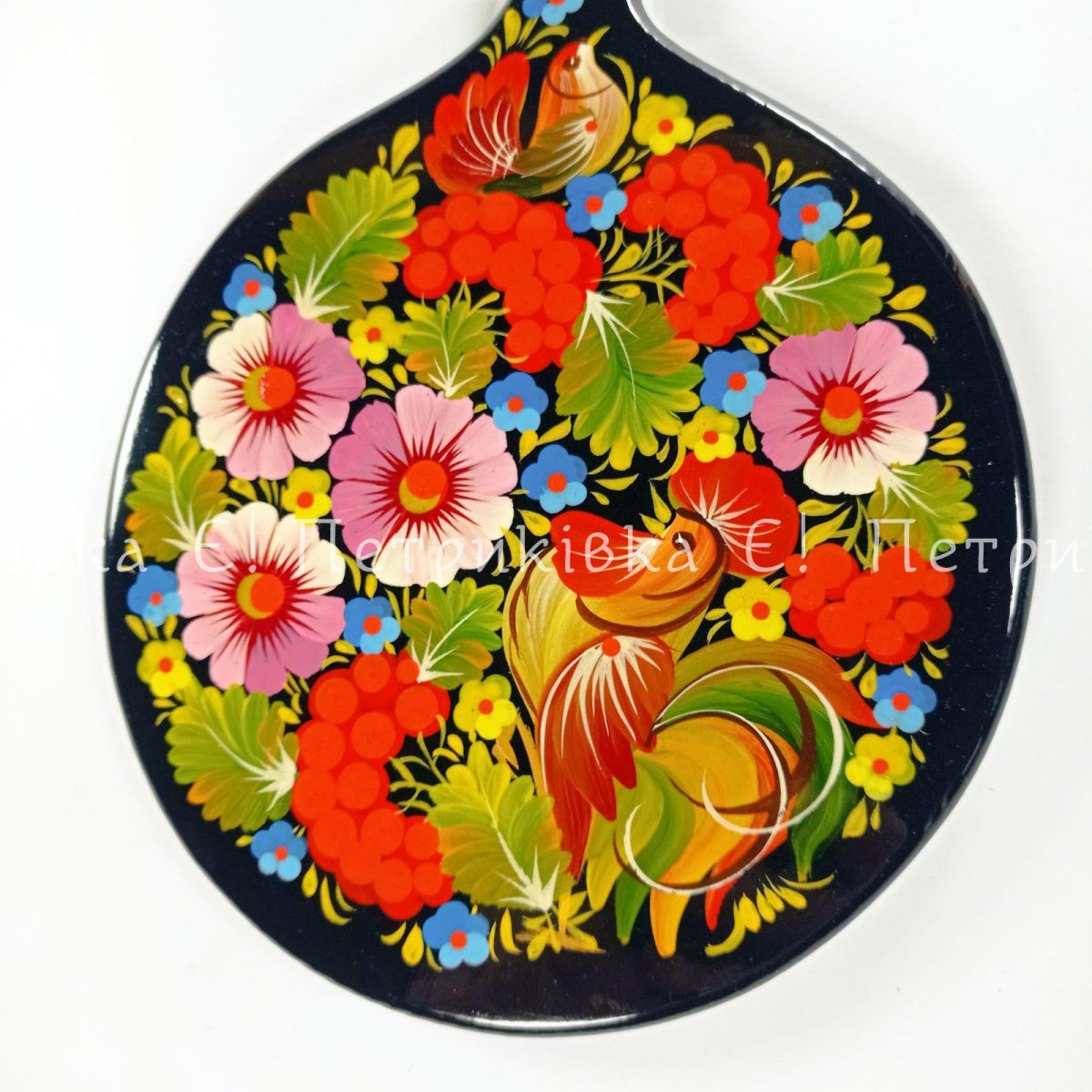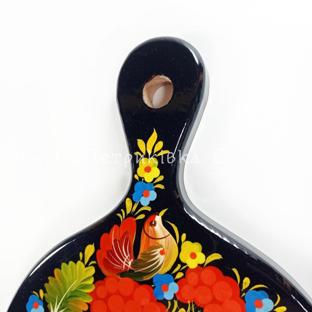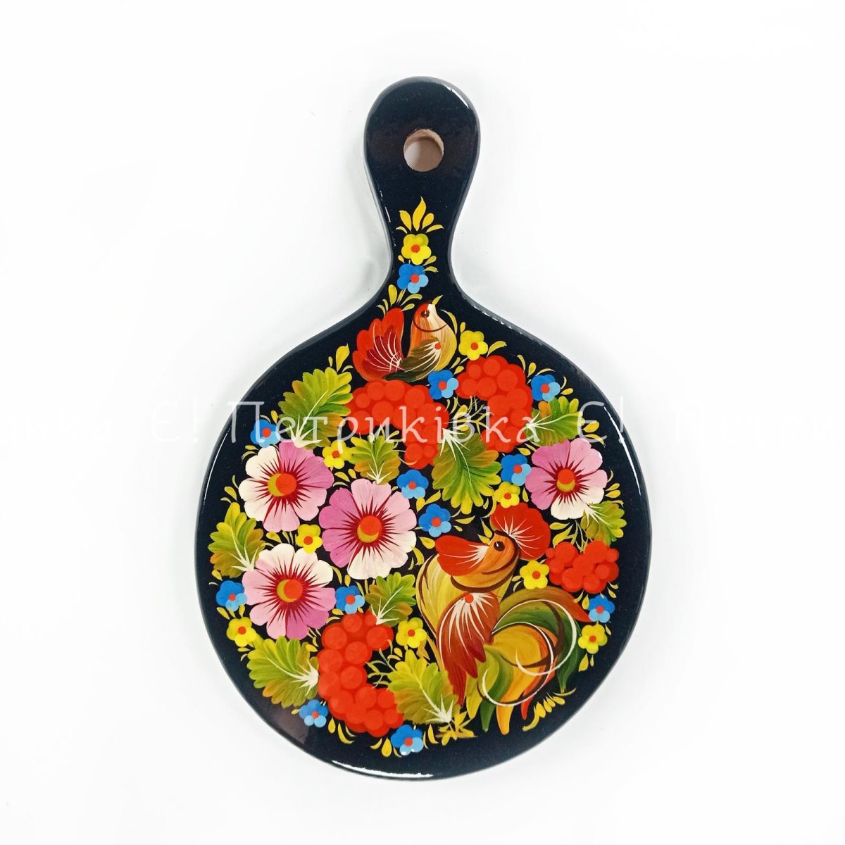 Доска фигурная с ручкой с Петриковской росписью "Петух и кукушка"
