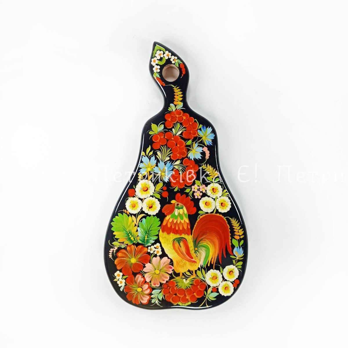 Доска грушка малая (26х14 см) с Петриковской росписью "Петушок в калине"