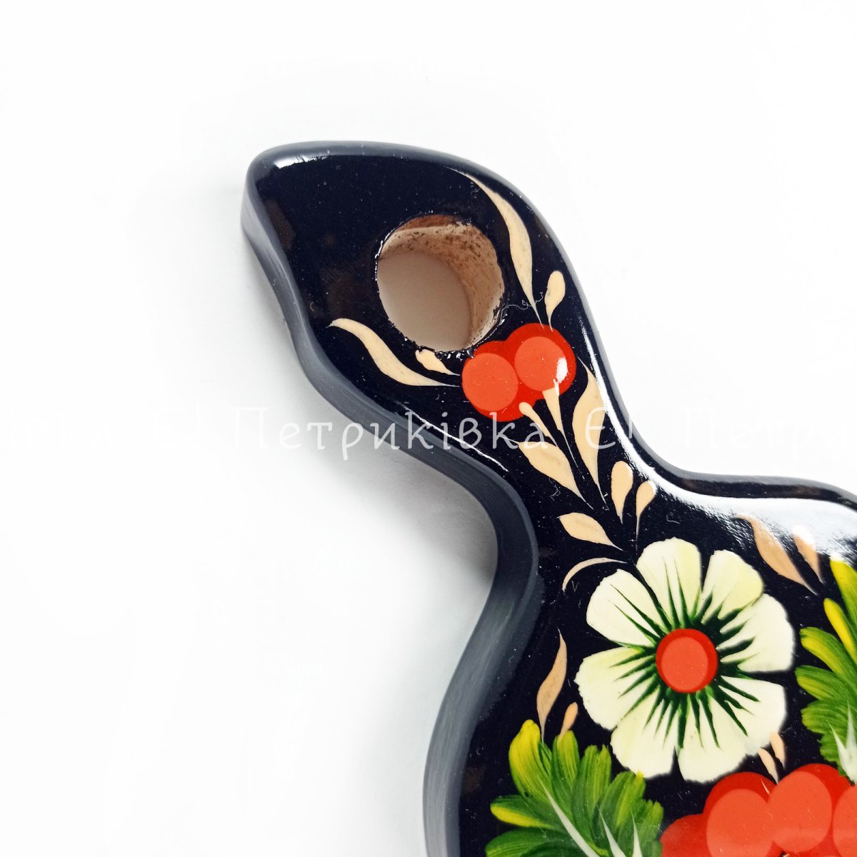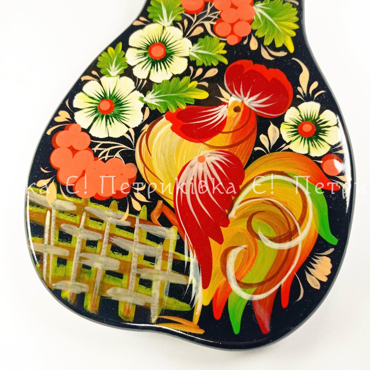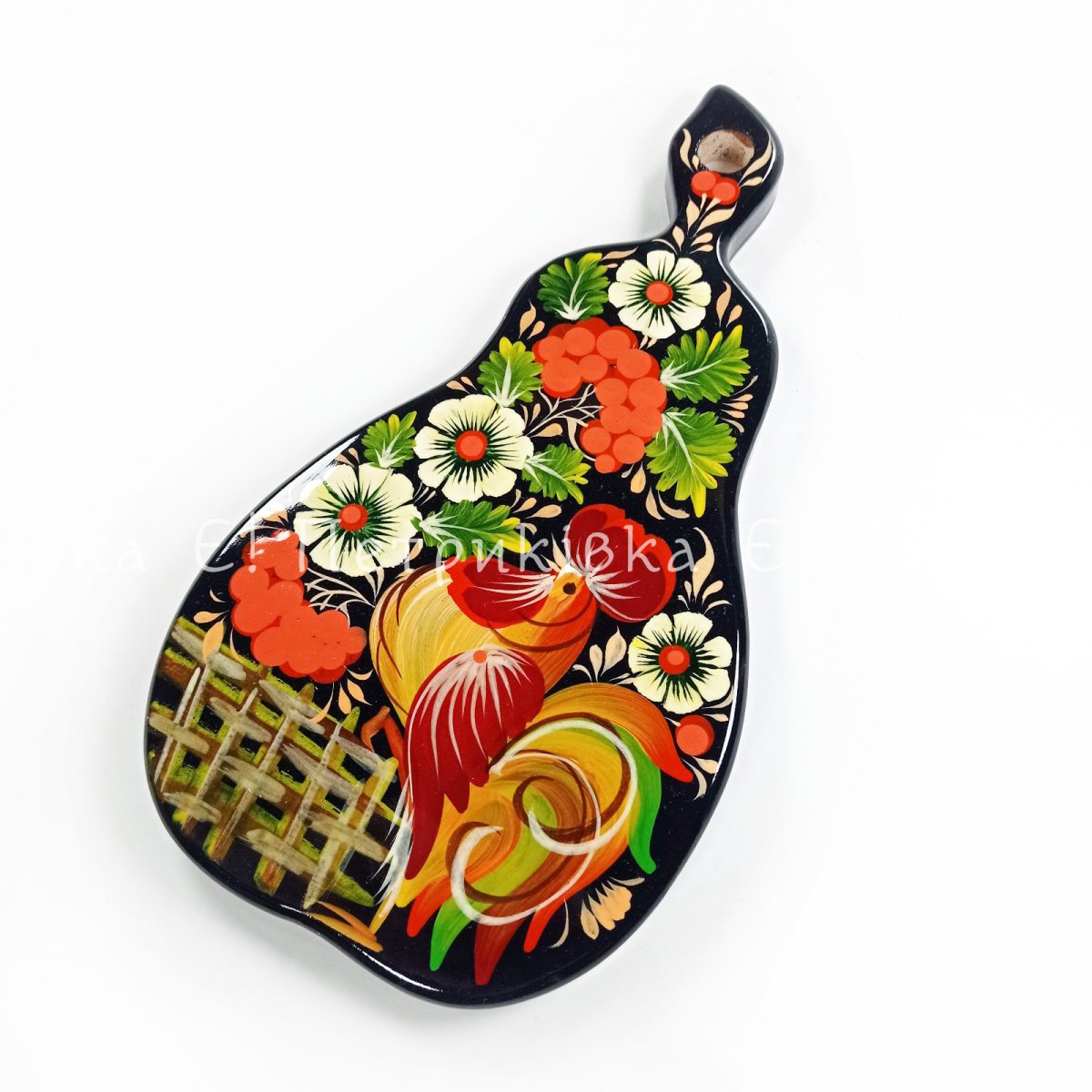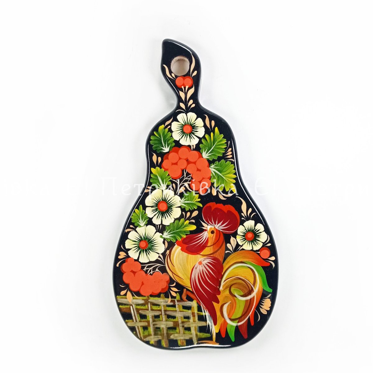 Доска грушка малая с Петриковской росписью "Петушок с белыми цветами"