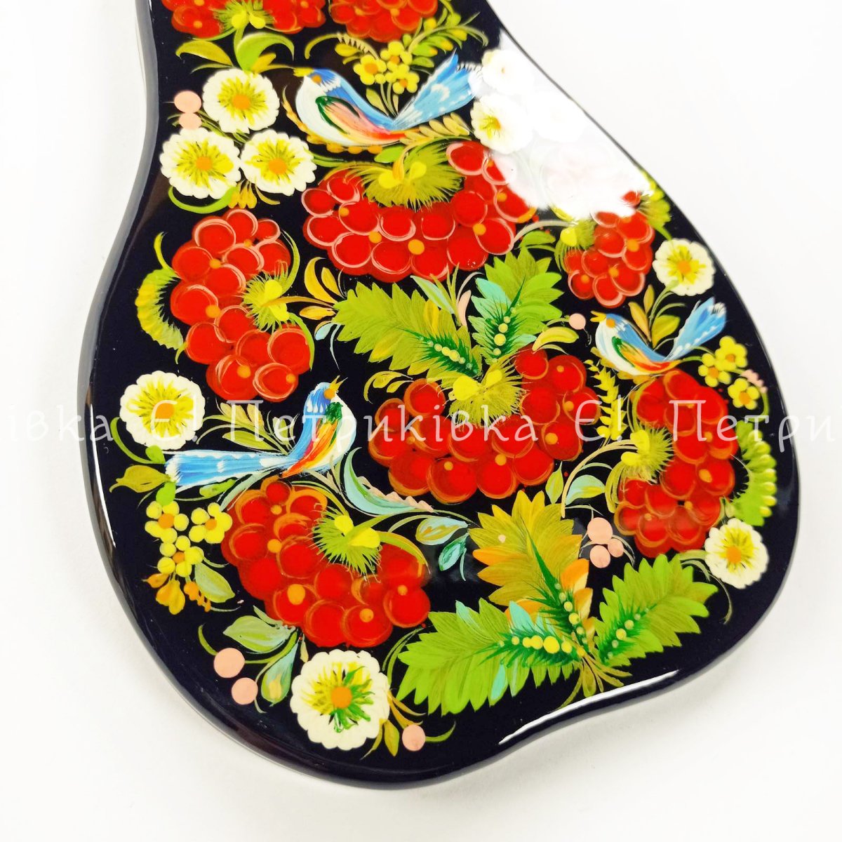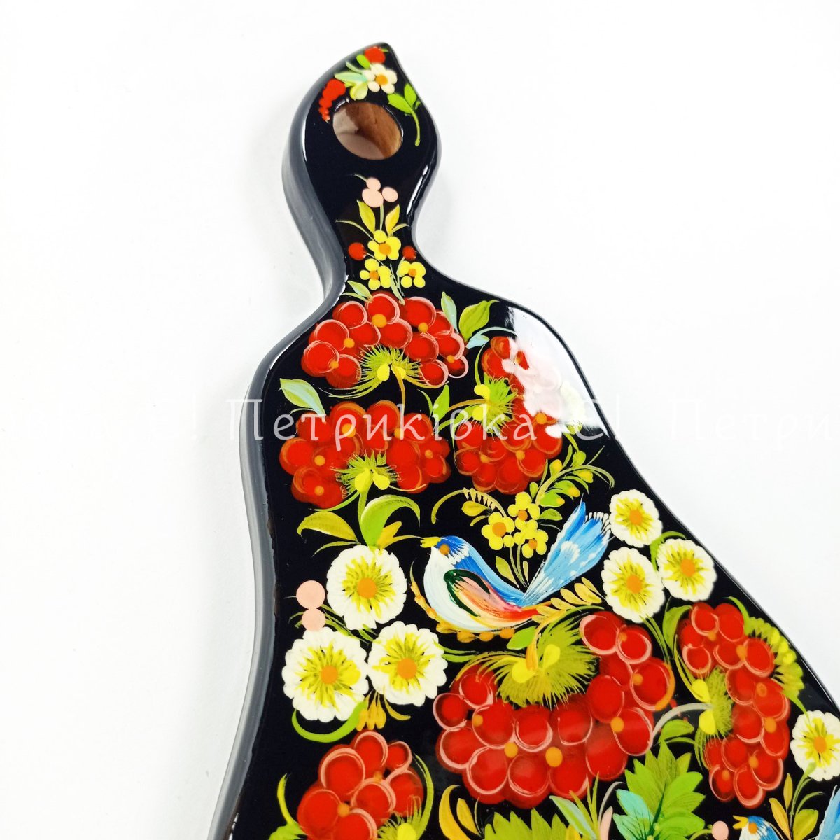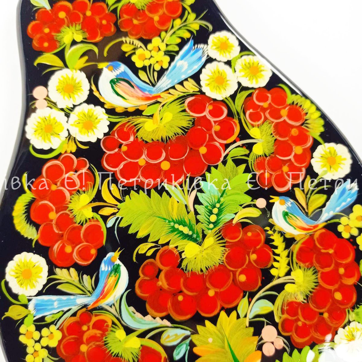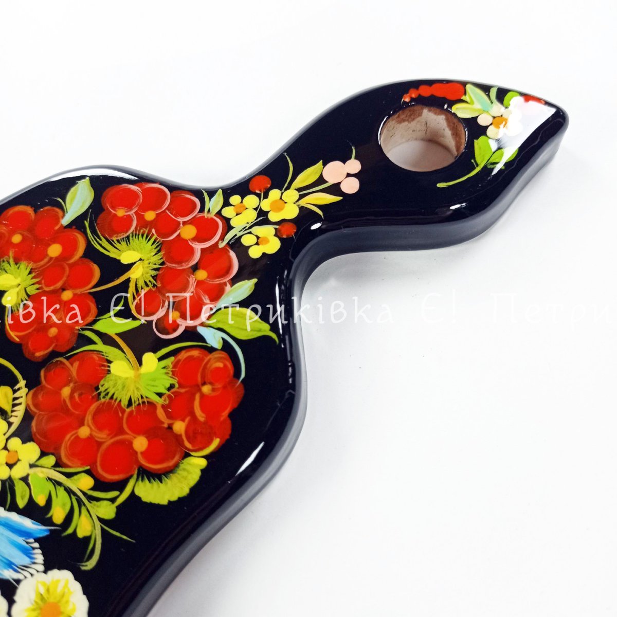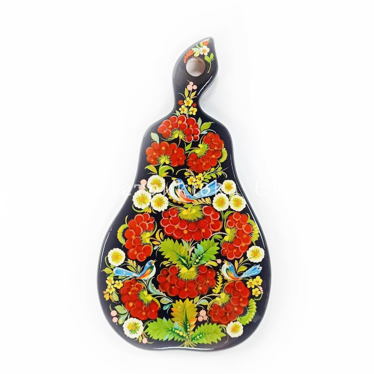 Доска грушка малая с Петриковской росписью "Кукушки в калине"