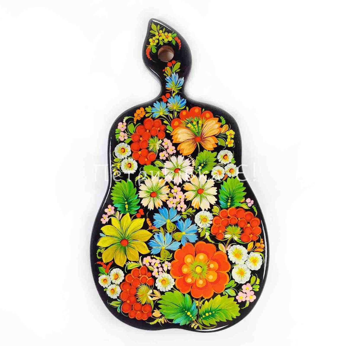 Доска грушка большая с Петриковской росписью "Полевой букет"