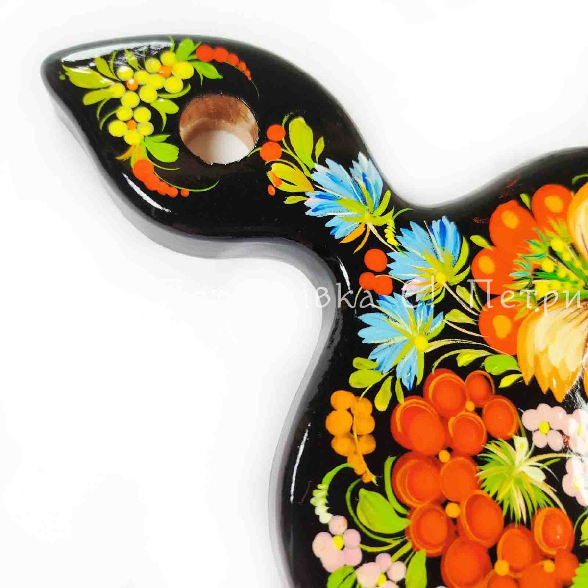 Роспись выполнена гуашевыми красками, два слоя глянцевого лака