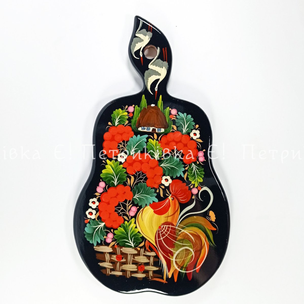 Доска грушка большая с Петриковской росписью "Украинское село"