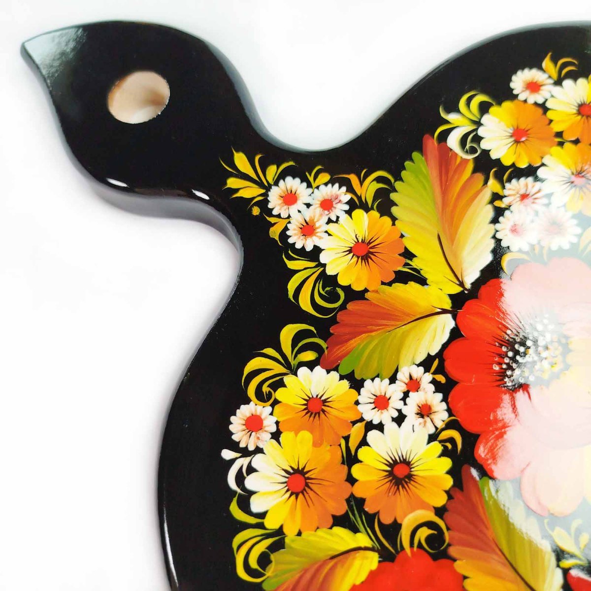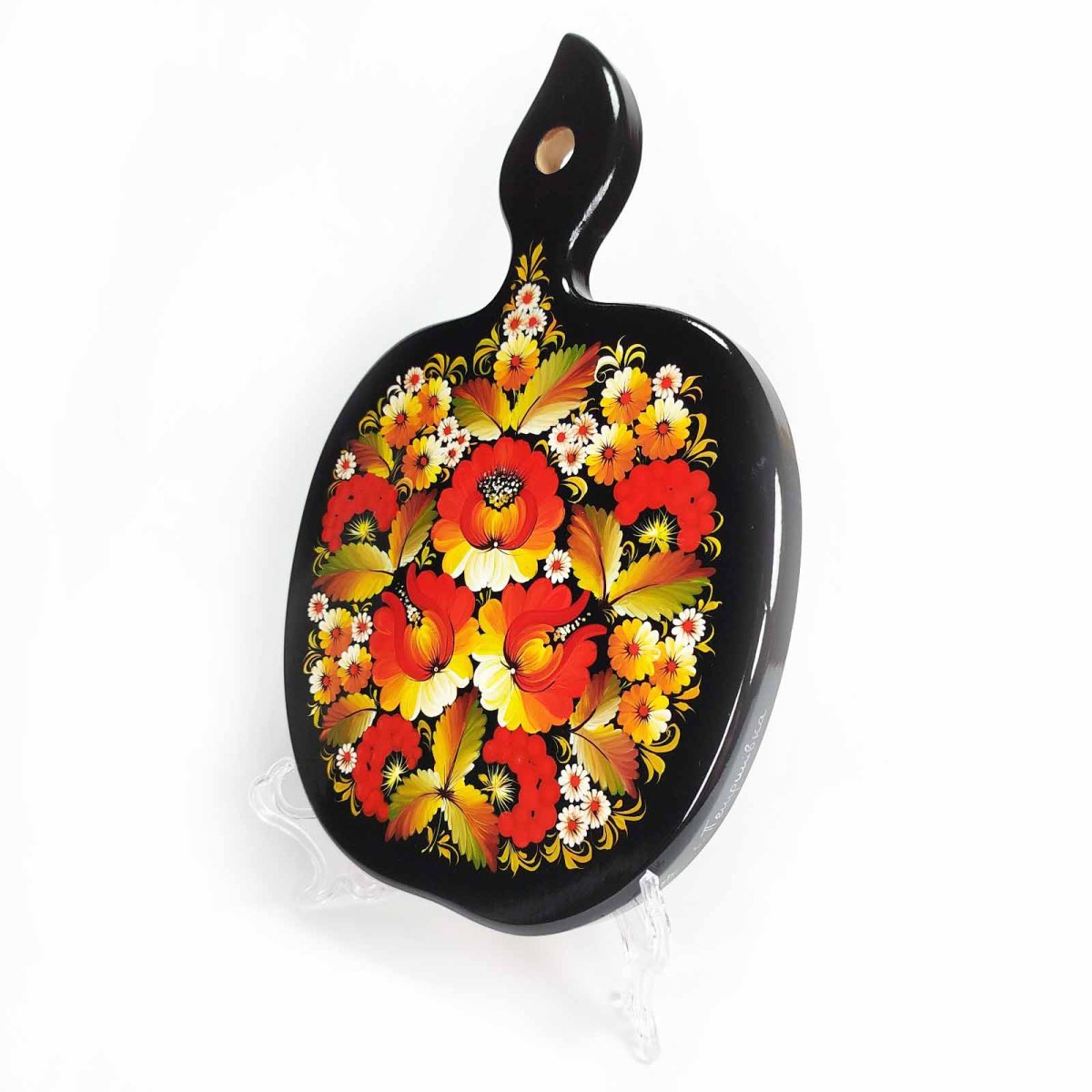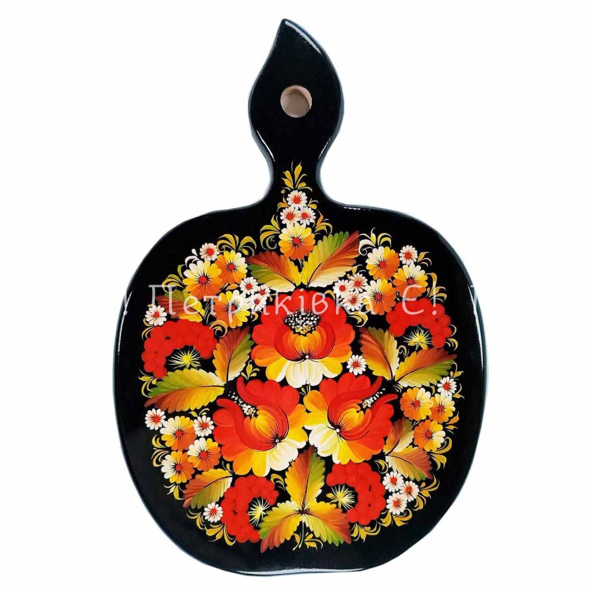 Доска яблоко большое (29х20 см) с Петриковской росписью "Сказочная"