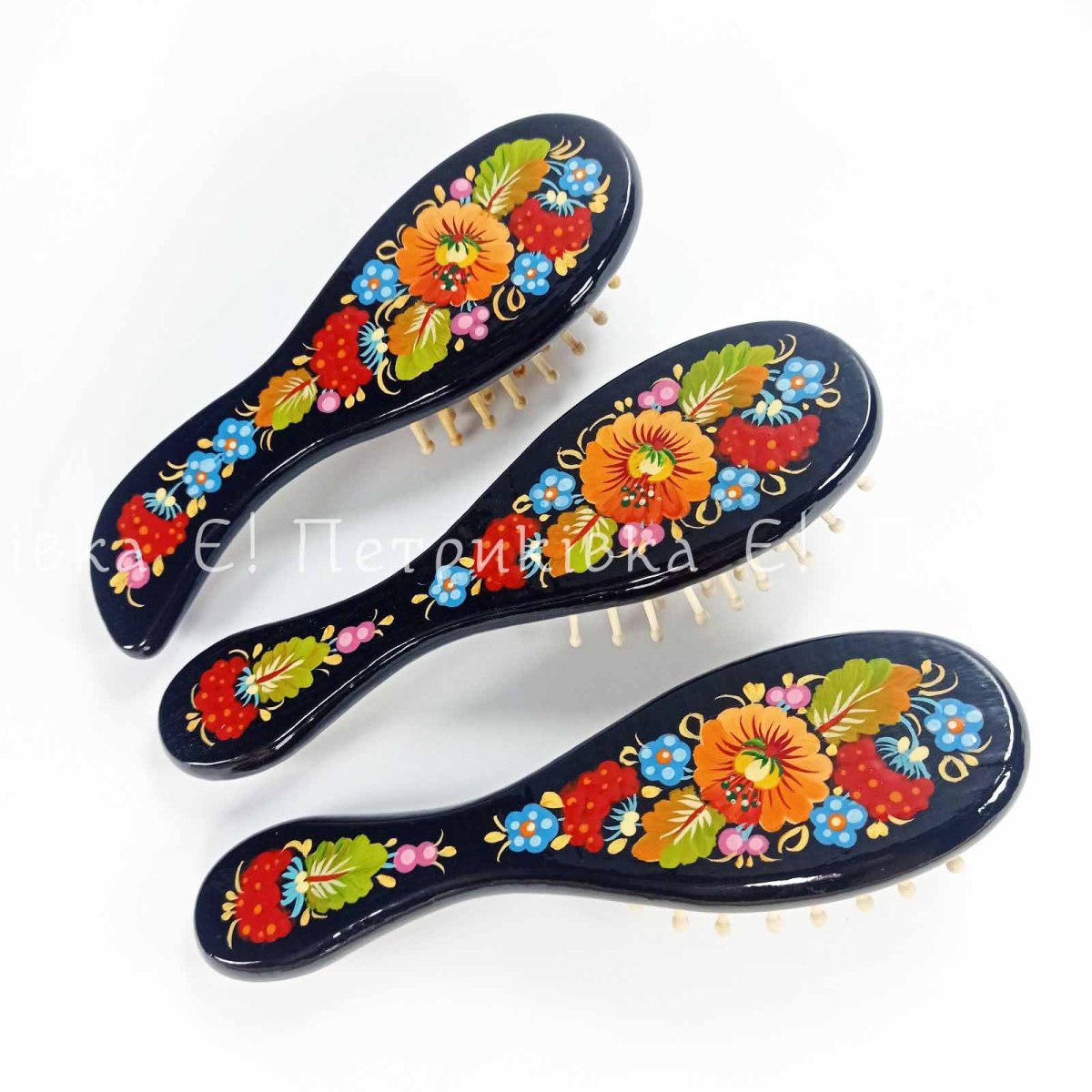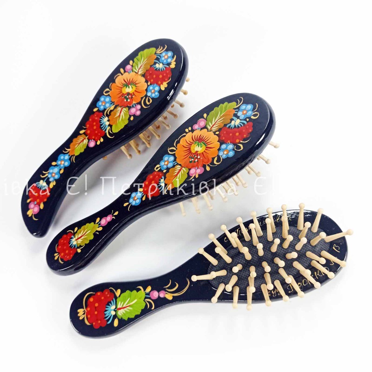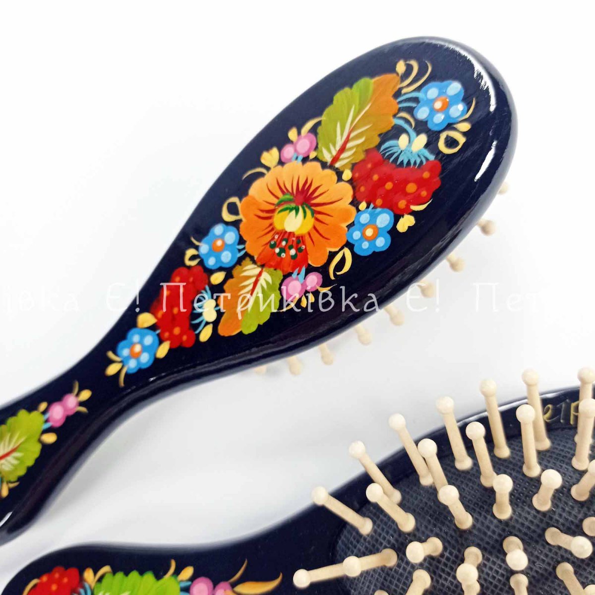 Расчёска массажная с Петриковской росписью малая №3