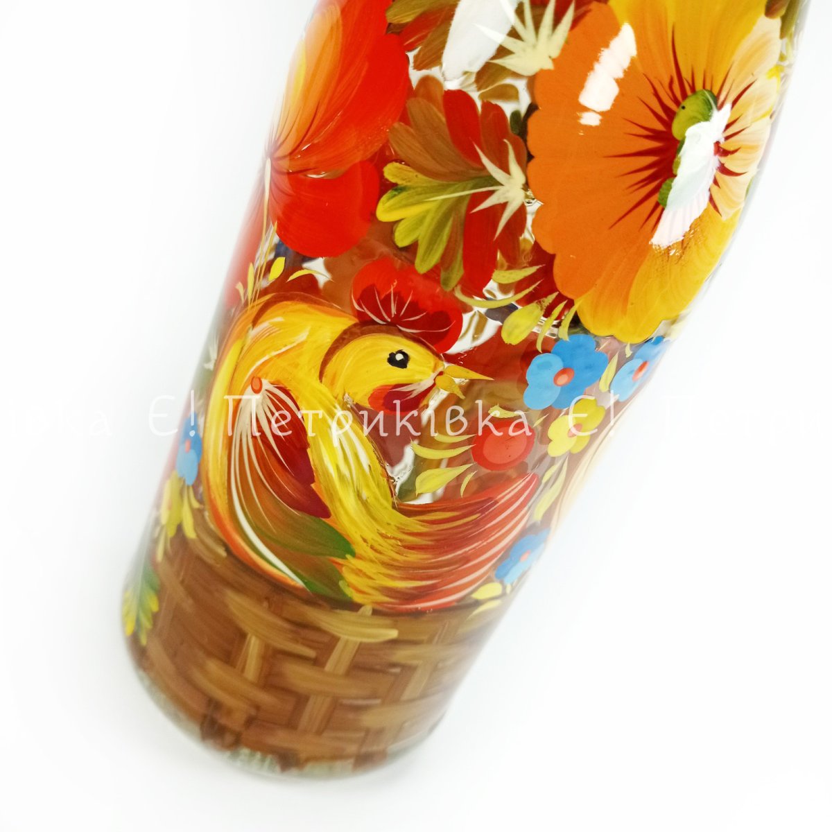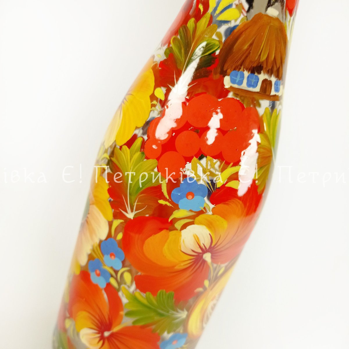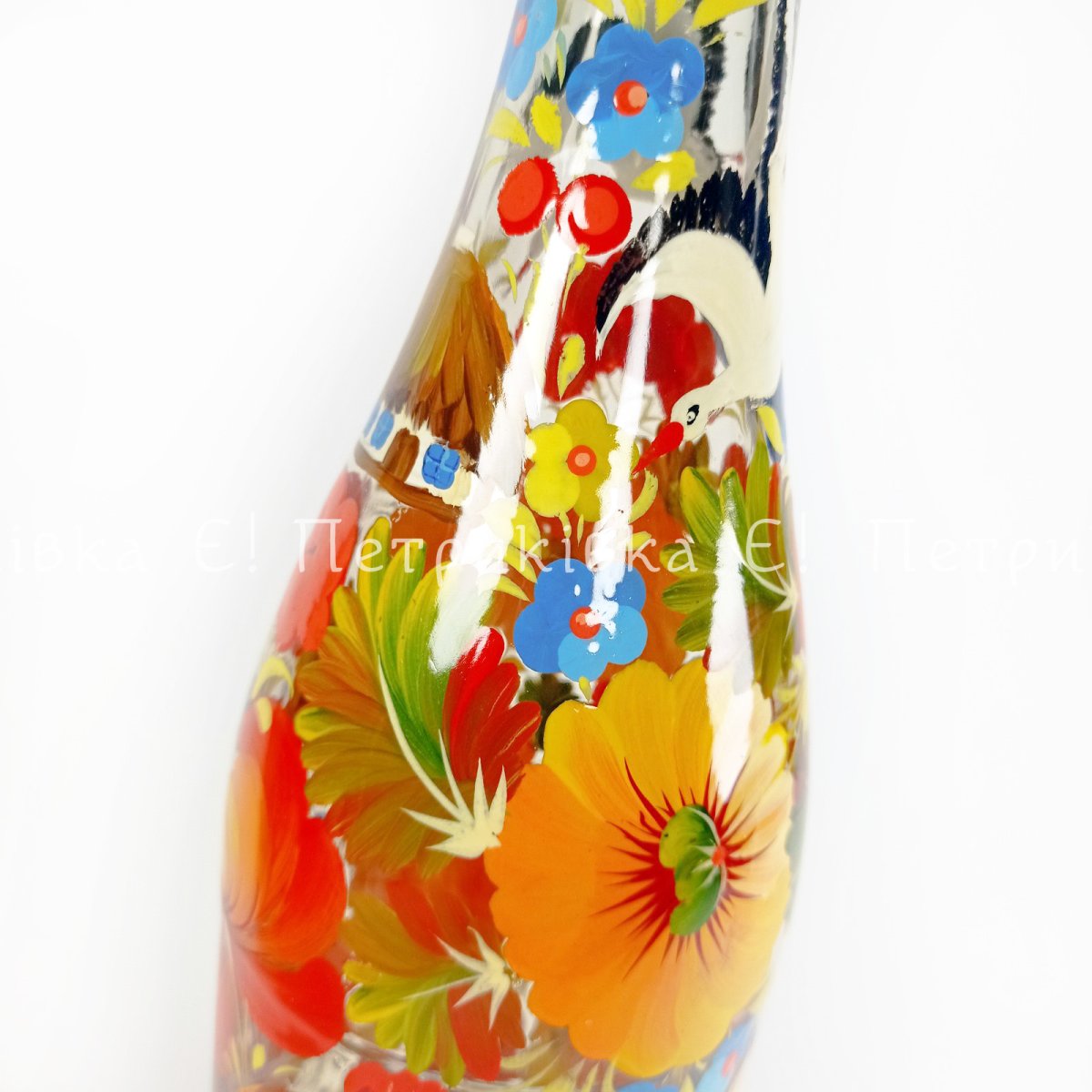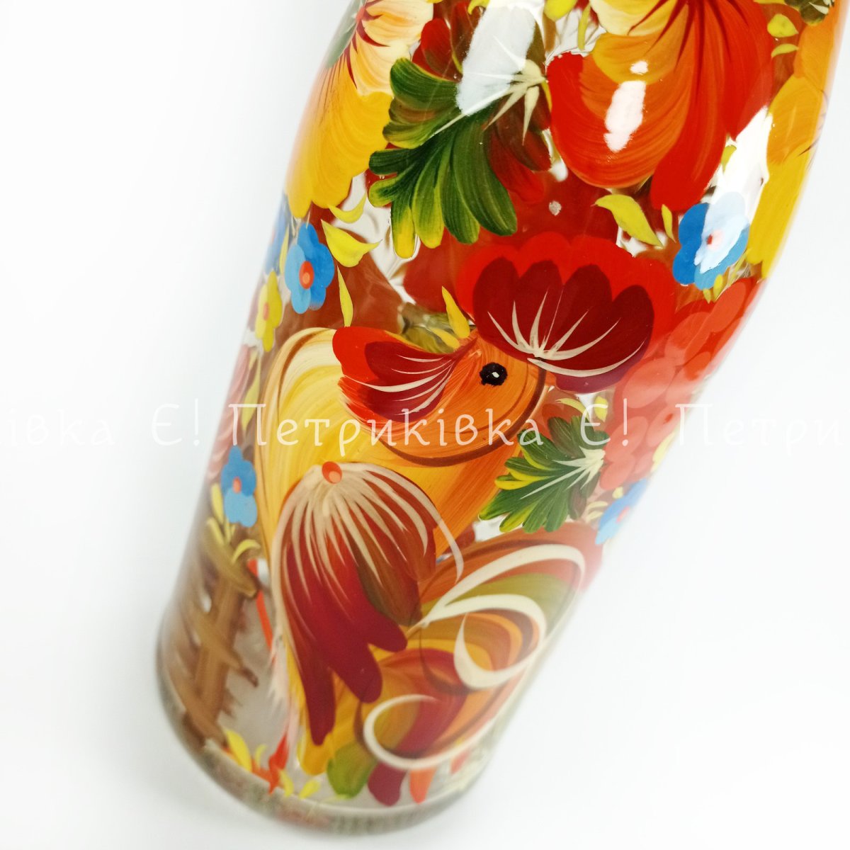 Бутылка с бугельной пробкой расписанная Петриковской росписью, объём 0,75 л, материал - стекло.