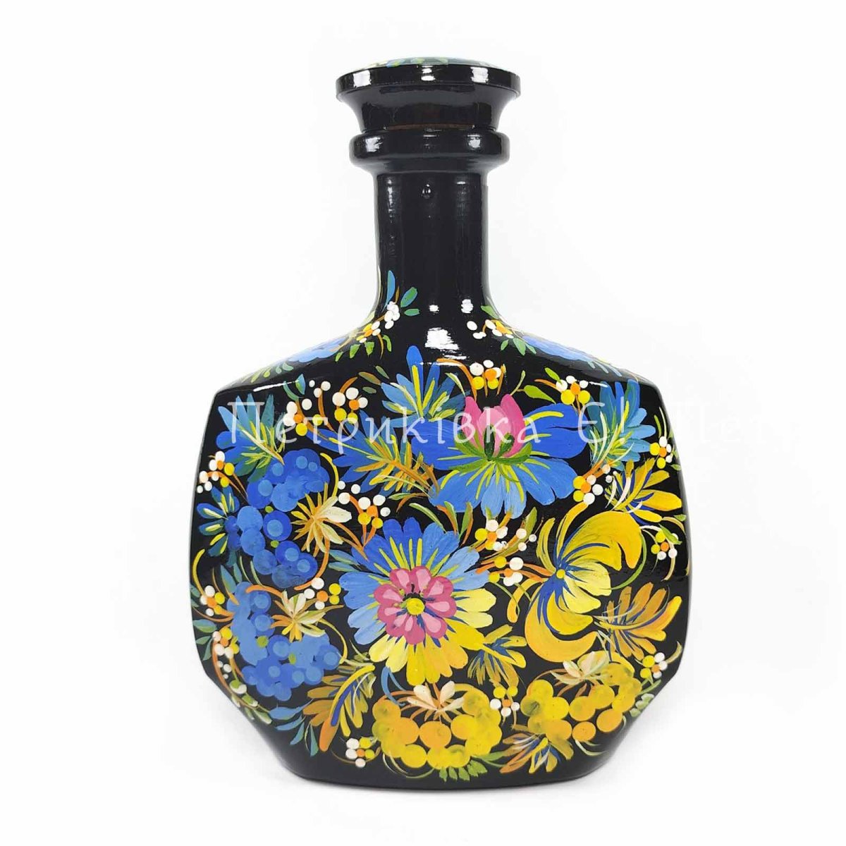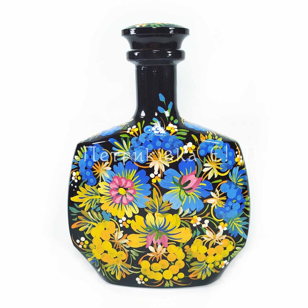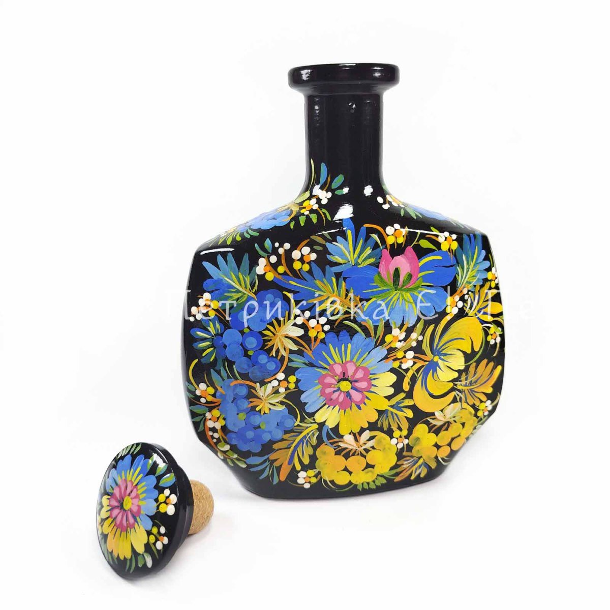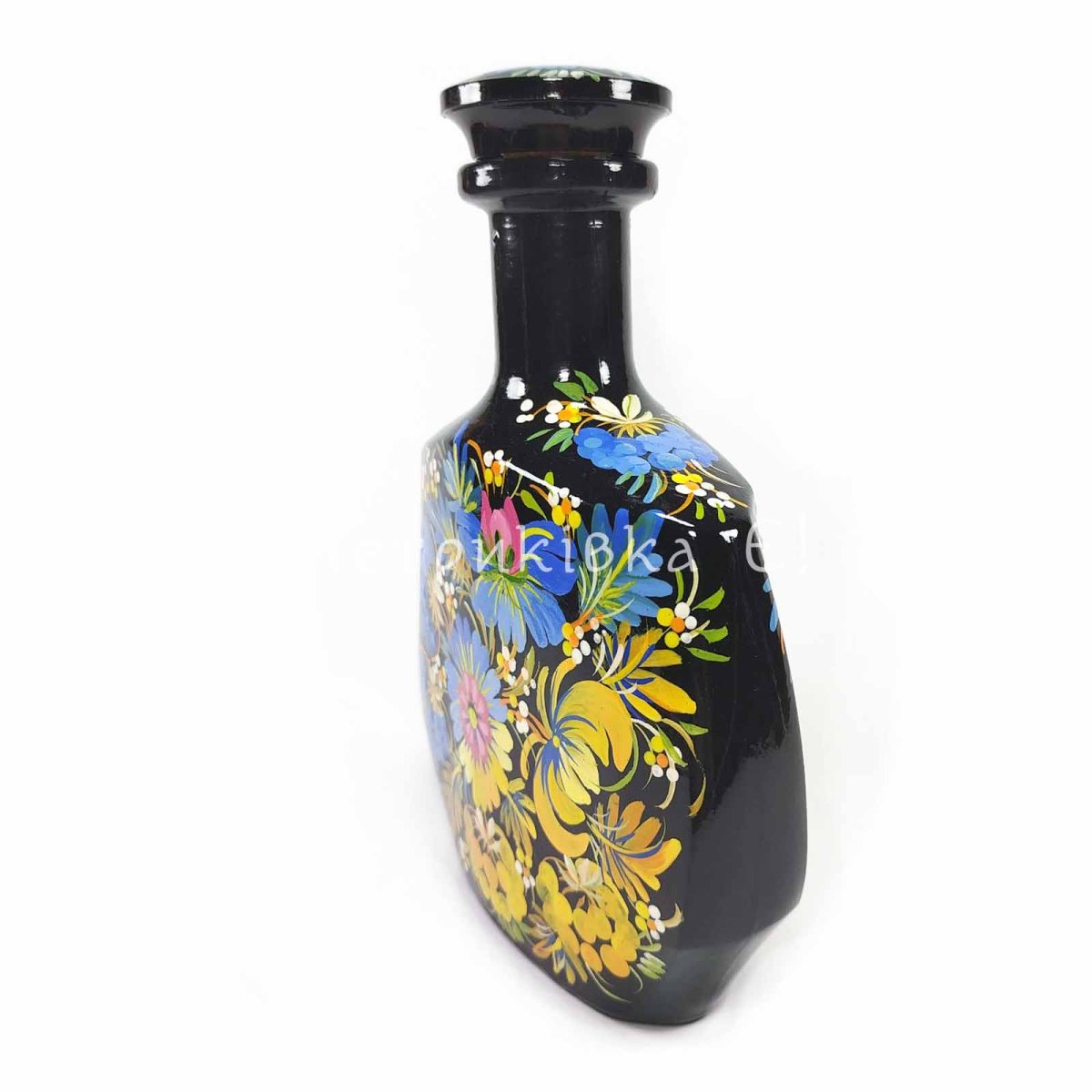 Бутылка расписная, объём 0,5 л, материал - стекло. Высота - 20 см, ширина - 9,3 см, длина - 4,5 см