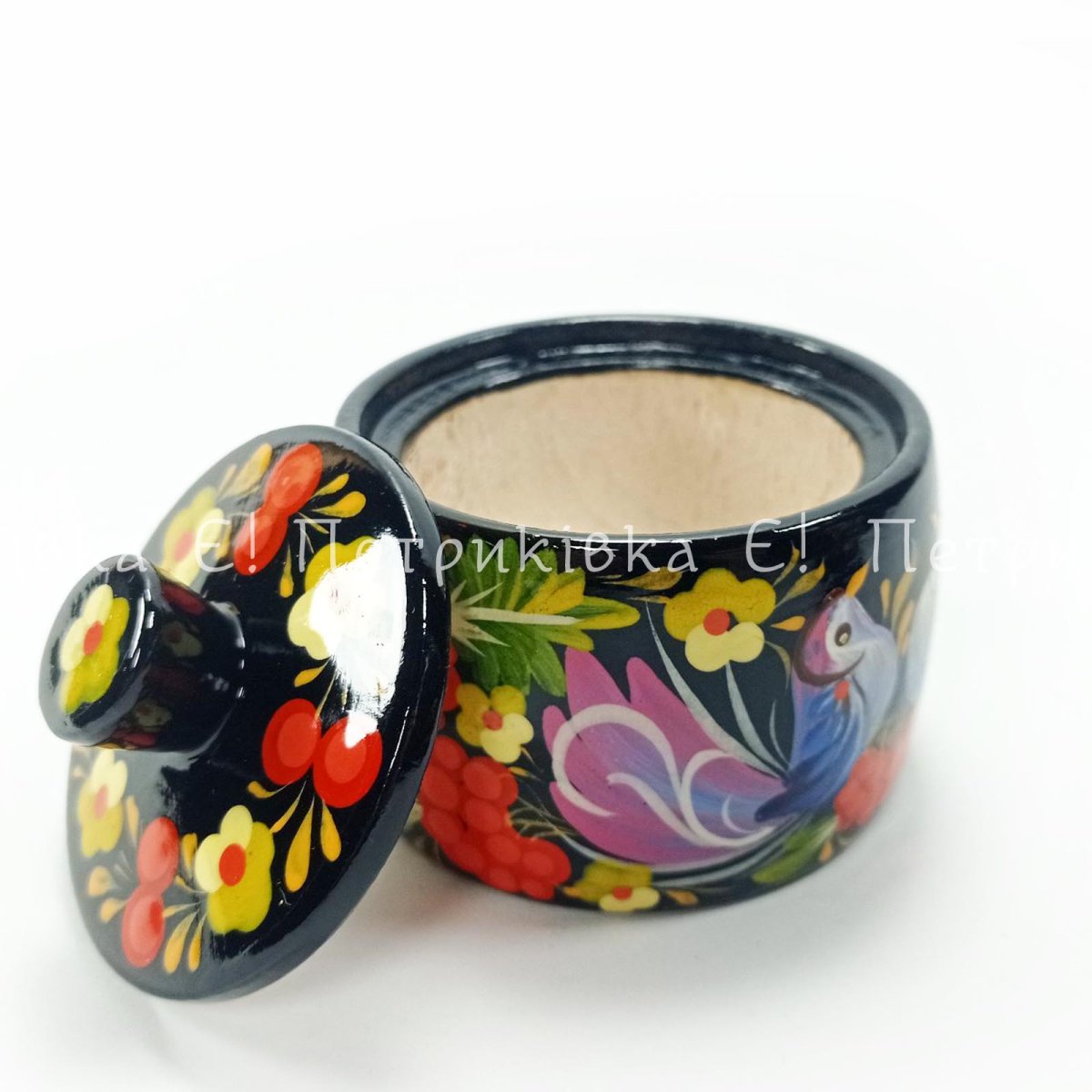 Размеры: диаметр - 6,5 см, высота бочёнка - 4 см, высота с крышкой, габаритная - 5,5 см.