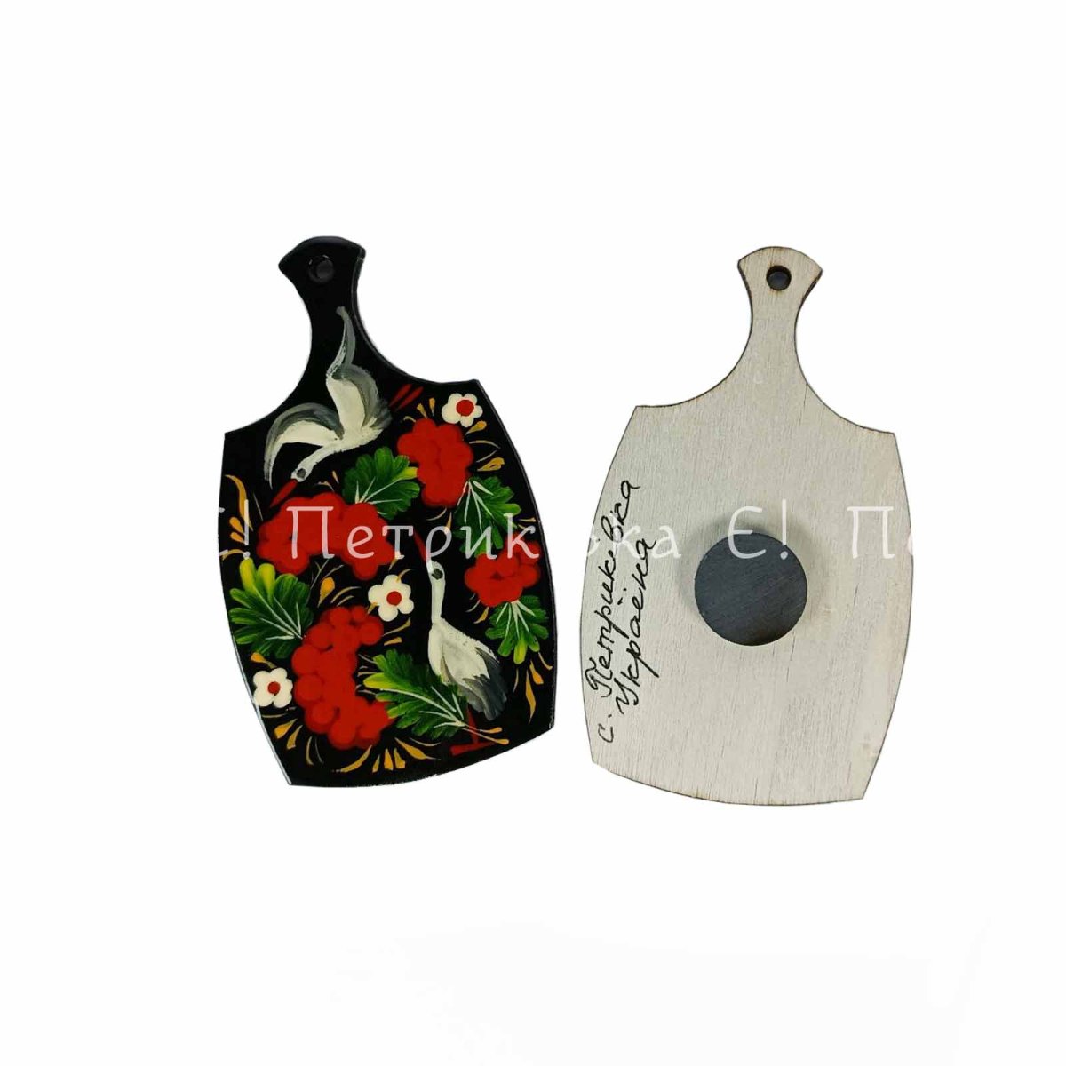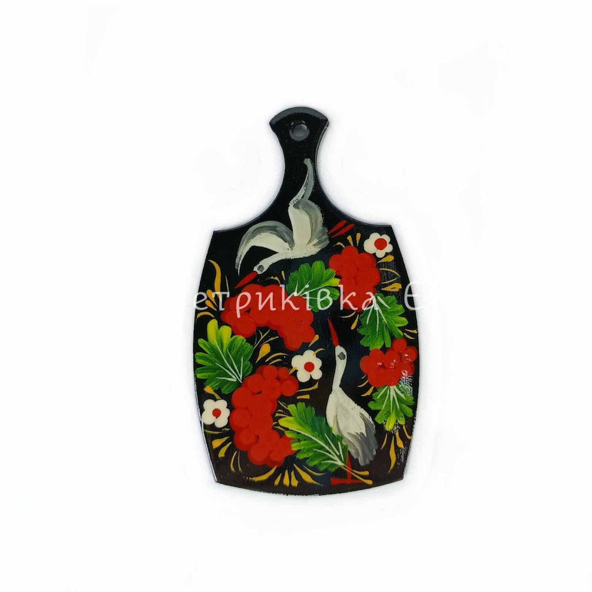 Магнит с Петриковской росписью "Досочка с парой аистов" (высота 9 см)