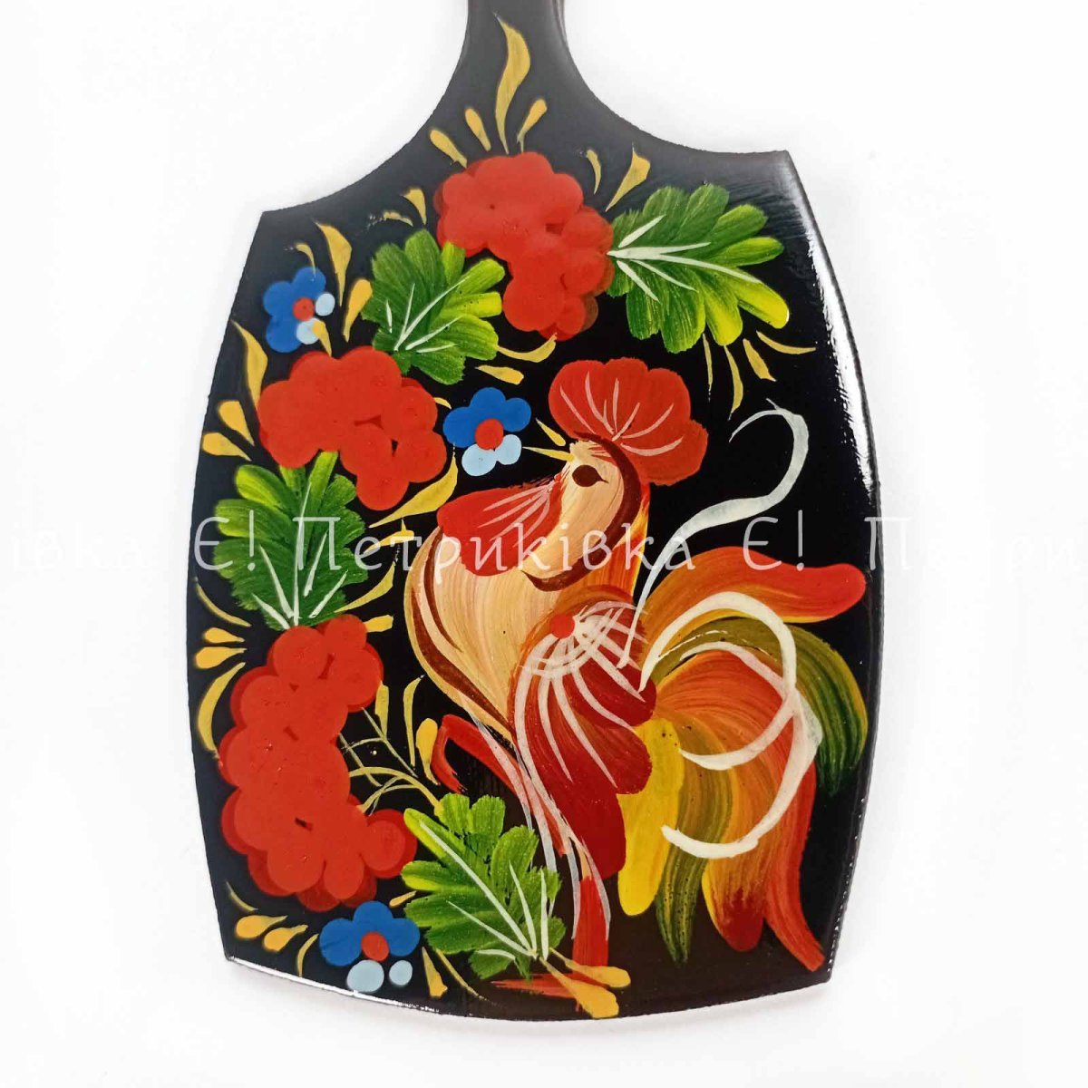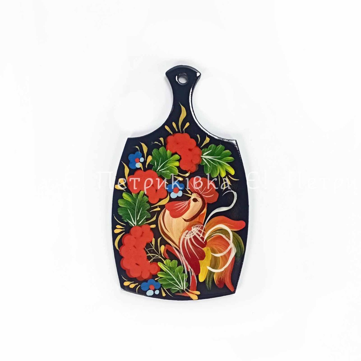 Магнит с Петриковской росписью "Досочка с петушком" (высота 9 см)