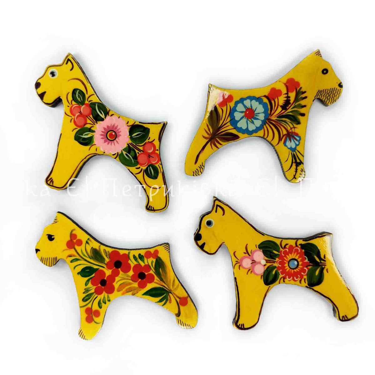 Магнит с Петриковской росписью "Собачка" натуральное дерево