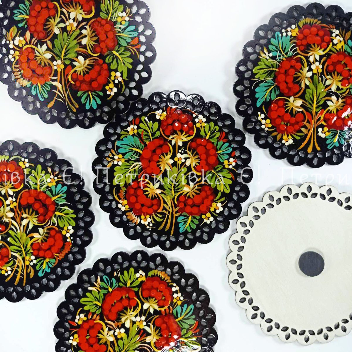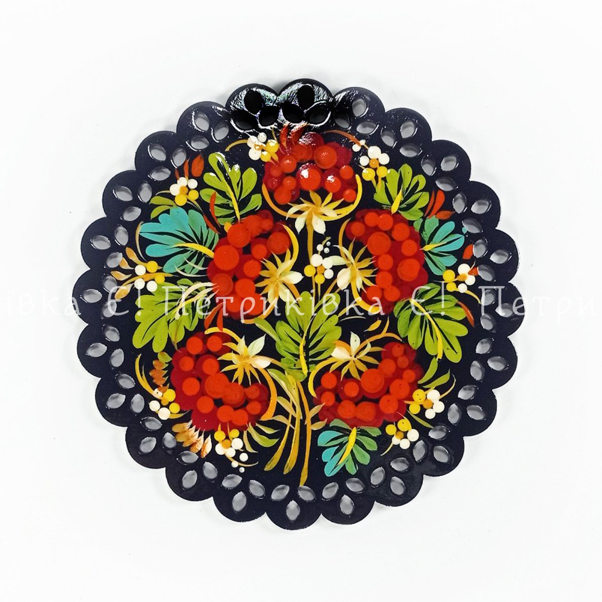 Магнит большой (Ø13 см) с Петриковской росписью "Калина"