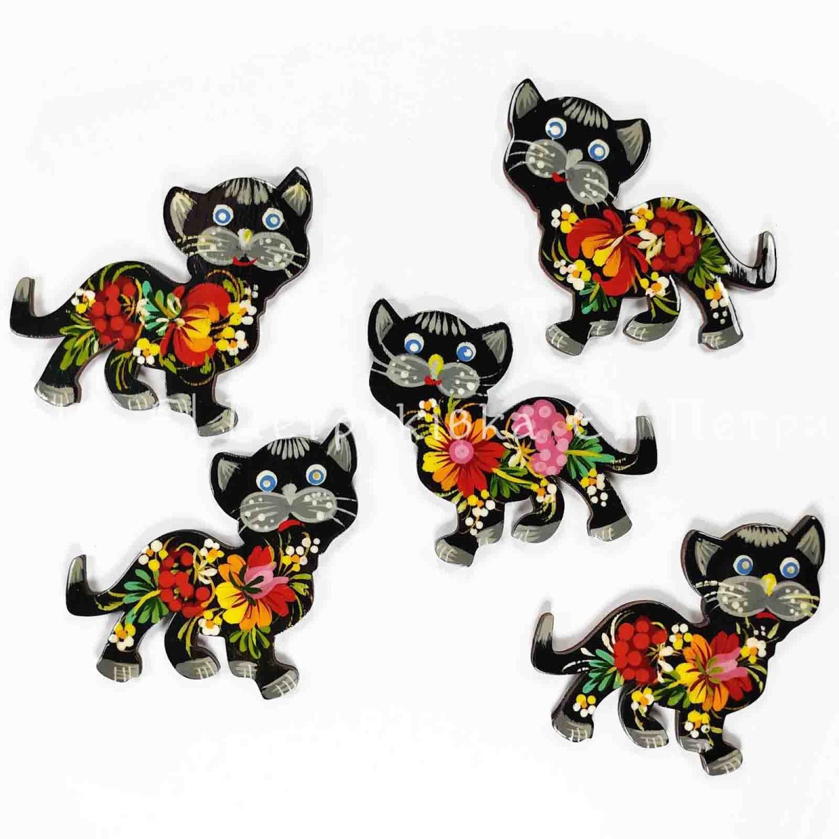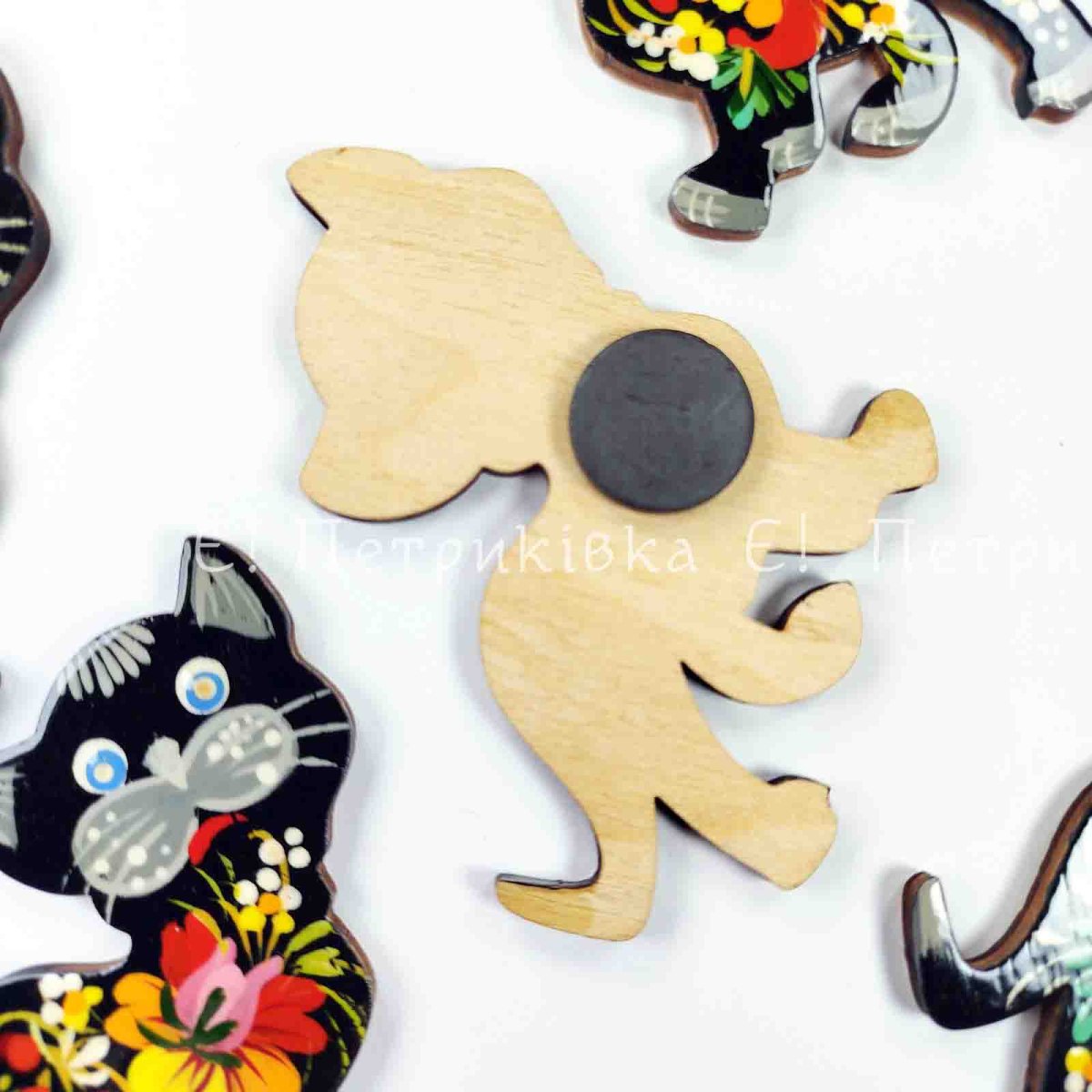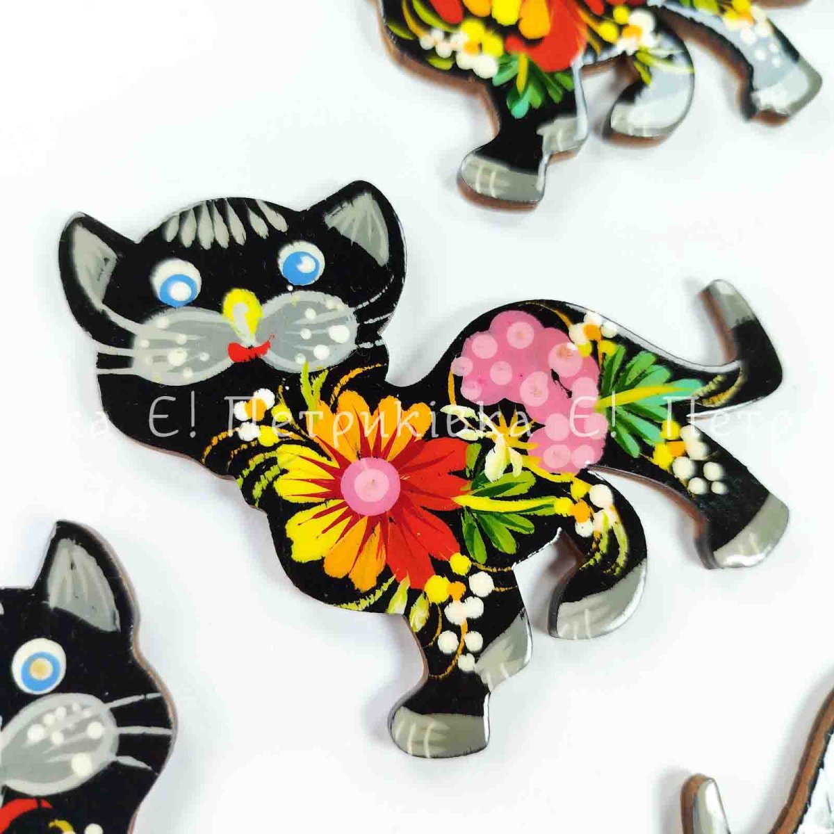 Магнит с Петриковской росписью "Чёрный кот" (ширина 8 см)