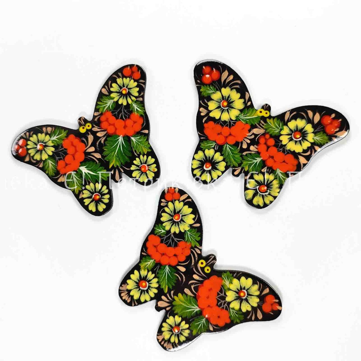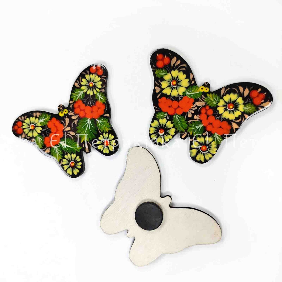 Магнит с Петриковской росписью "Бабочка С глазами" (ширина 9 см)