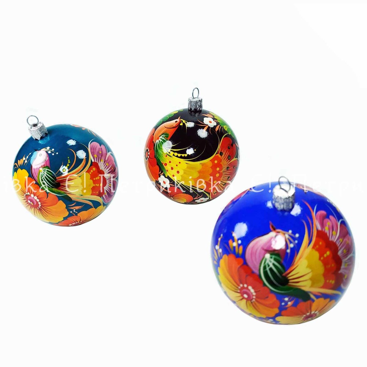 Набор пластиковых шаров 8 см. с Петриковской росписью - 3 шт.