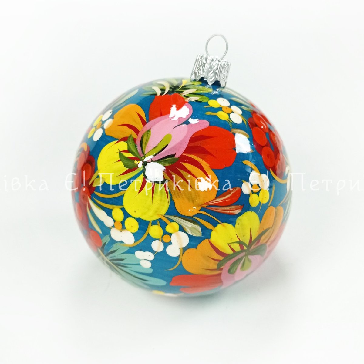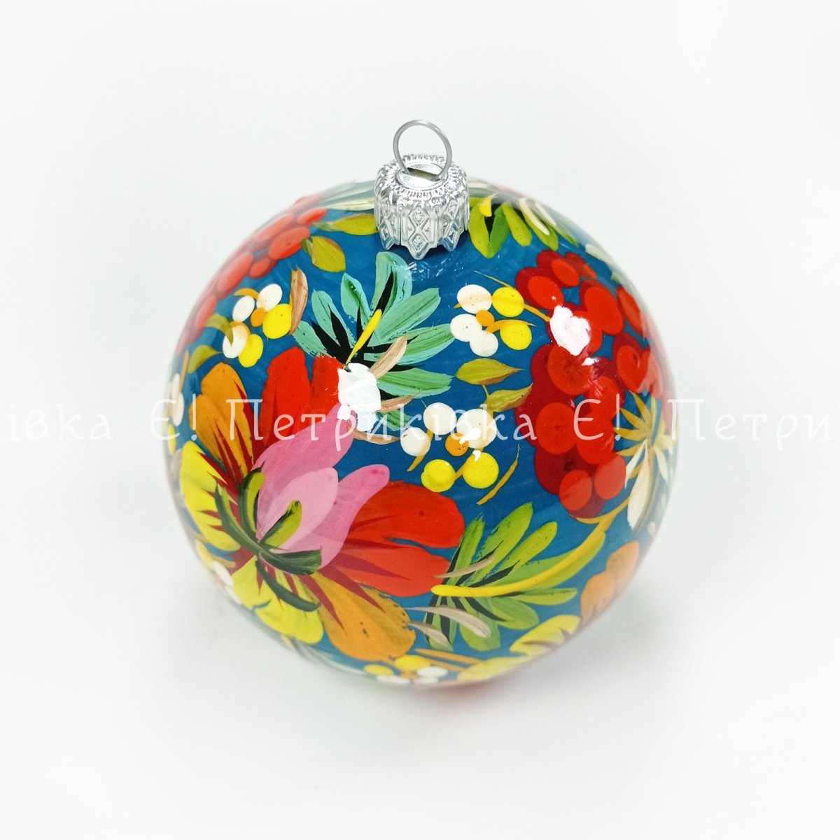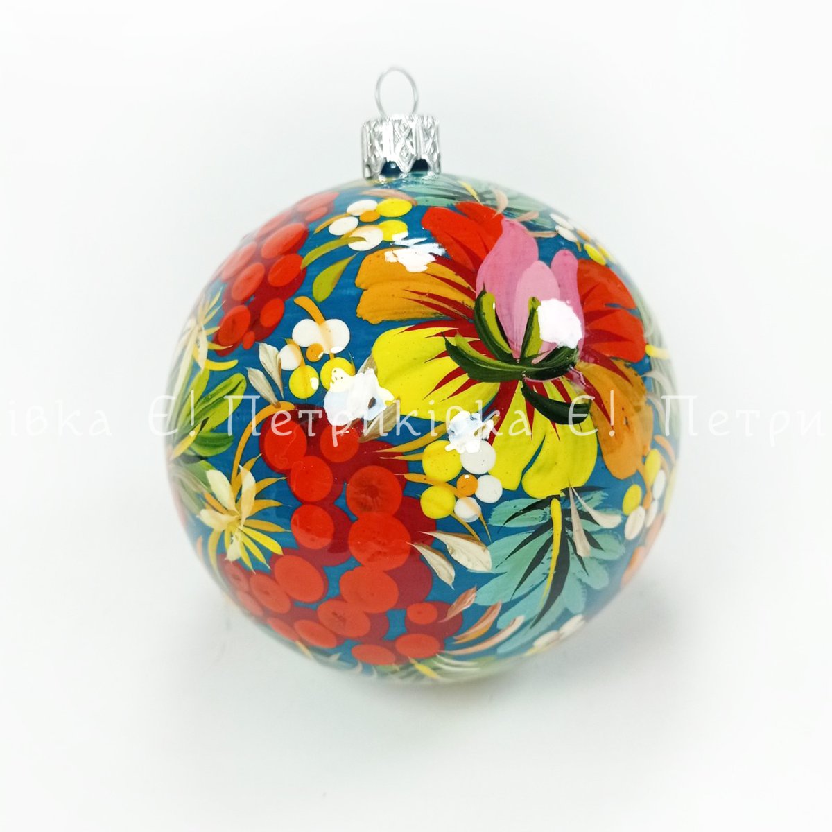 Шар ёлочный с Петриковской росписью "Цибульки с калиной" бирюза