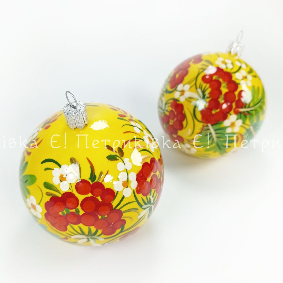 Шар ёлочный с Петриковской росписью "В калине на жёлтом" диаметр 8 см