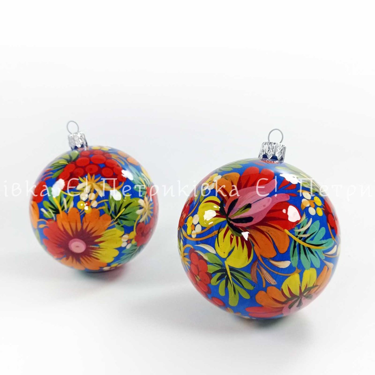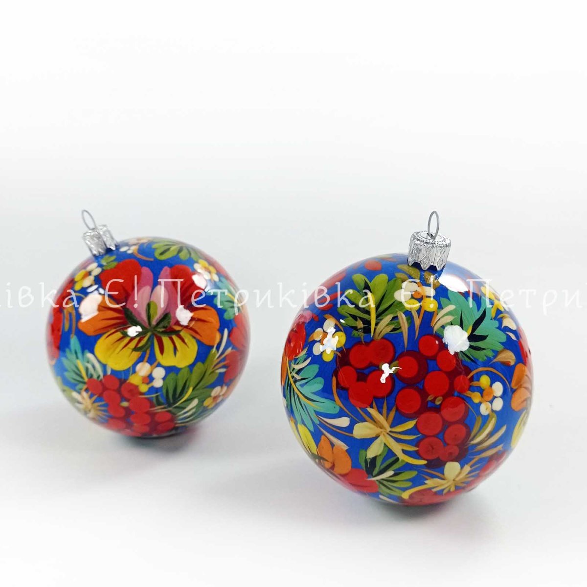 Шар ёлочный с Петриковской росписью 10 см "В цветах на синем"