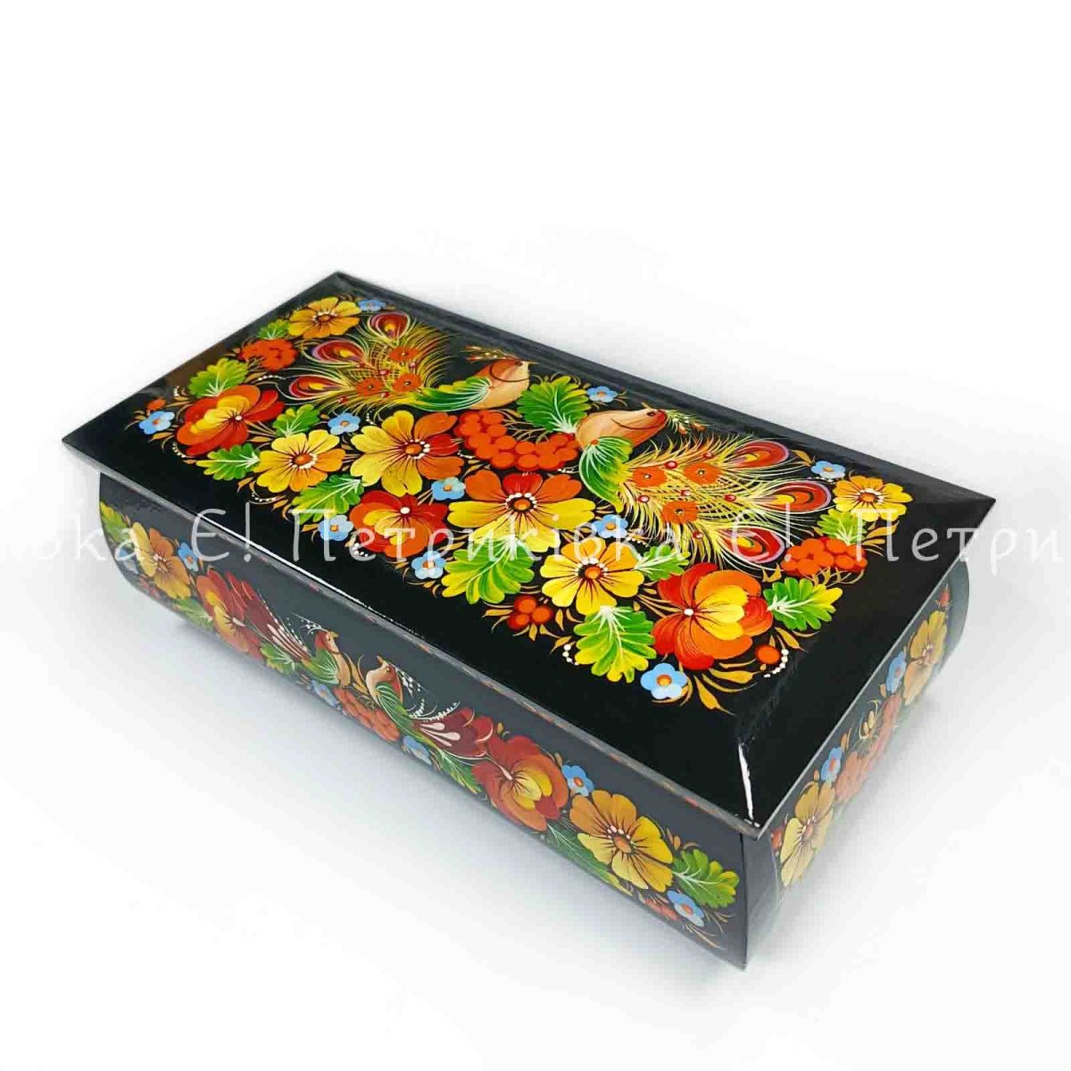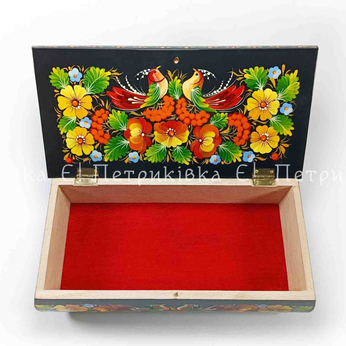 Шкатулка прямоугольная (25х12x9 см) расписная "С Жар-птицами"