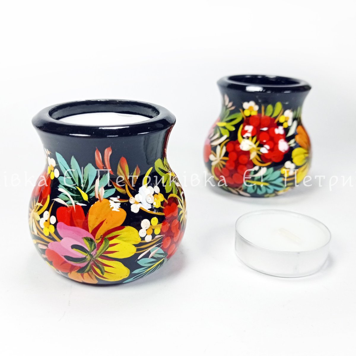 Подсвечник деревянный с подлаковой Петриковской росписью.