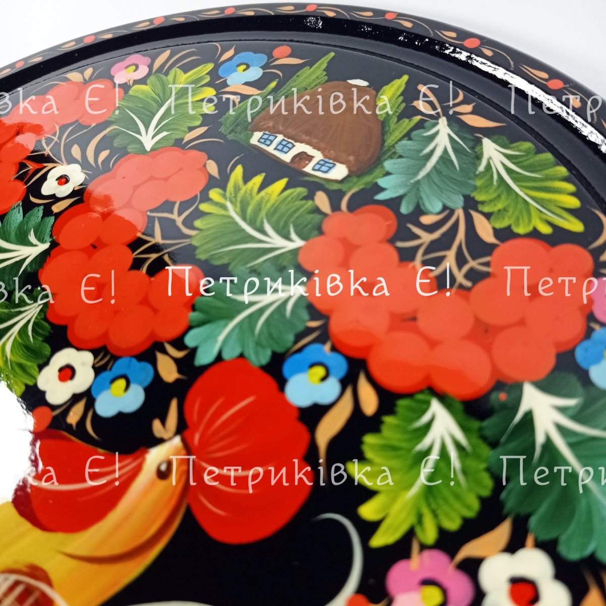 Панно декоративное выполнено из древесины бука. Диаметр - 25 см, толщина - 1,5 см. Роспись - масло, три слоя лака. Задняя поверхность - шлифованное натуральное дерево. Подвес - в комплекте