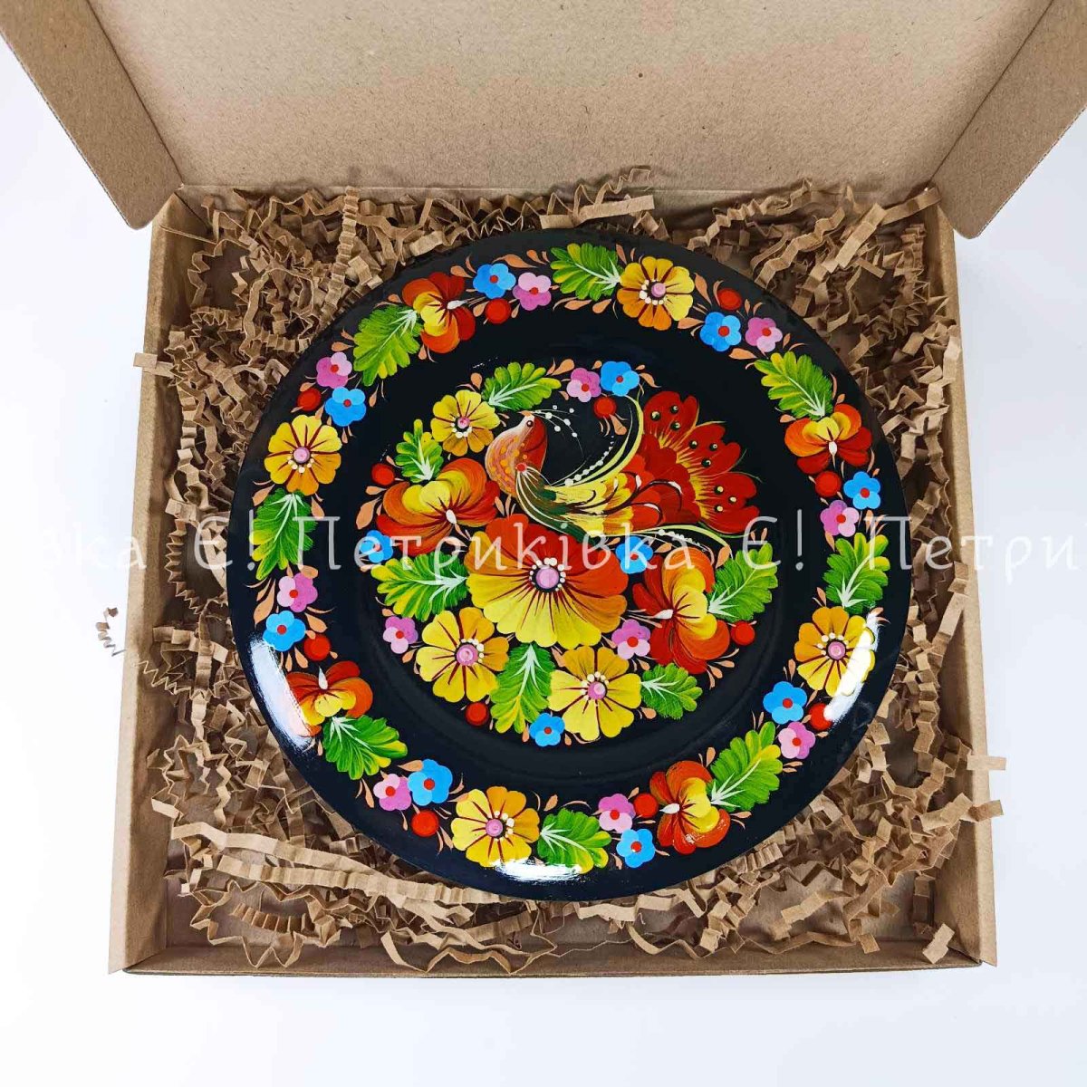 Тарелка с Петриковской росписью 20 см "Сказочная птичка в цветах"