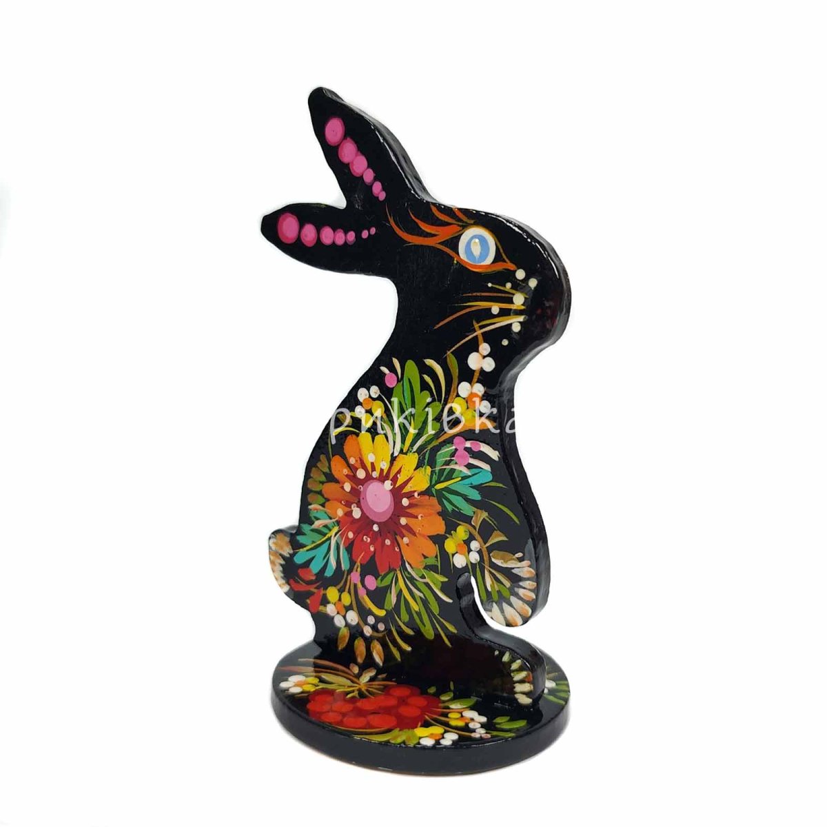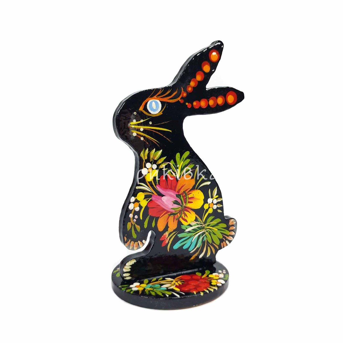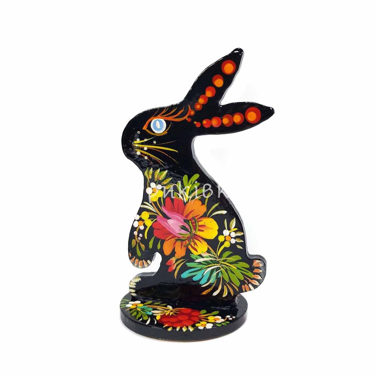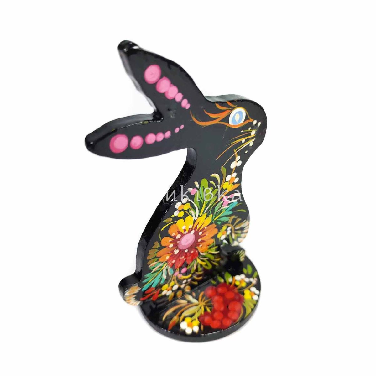 Кролик пасхальный (11х7 см) с Петриковской росписью на чёрном