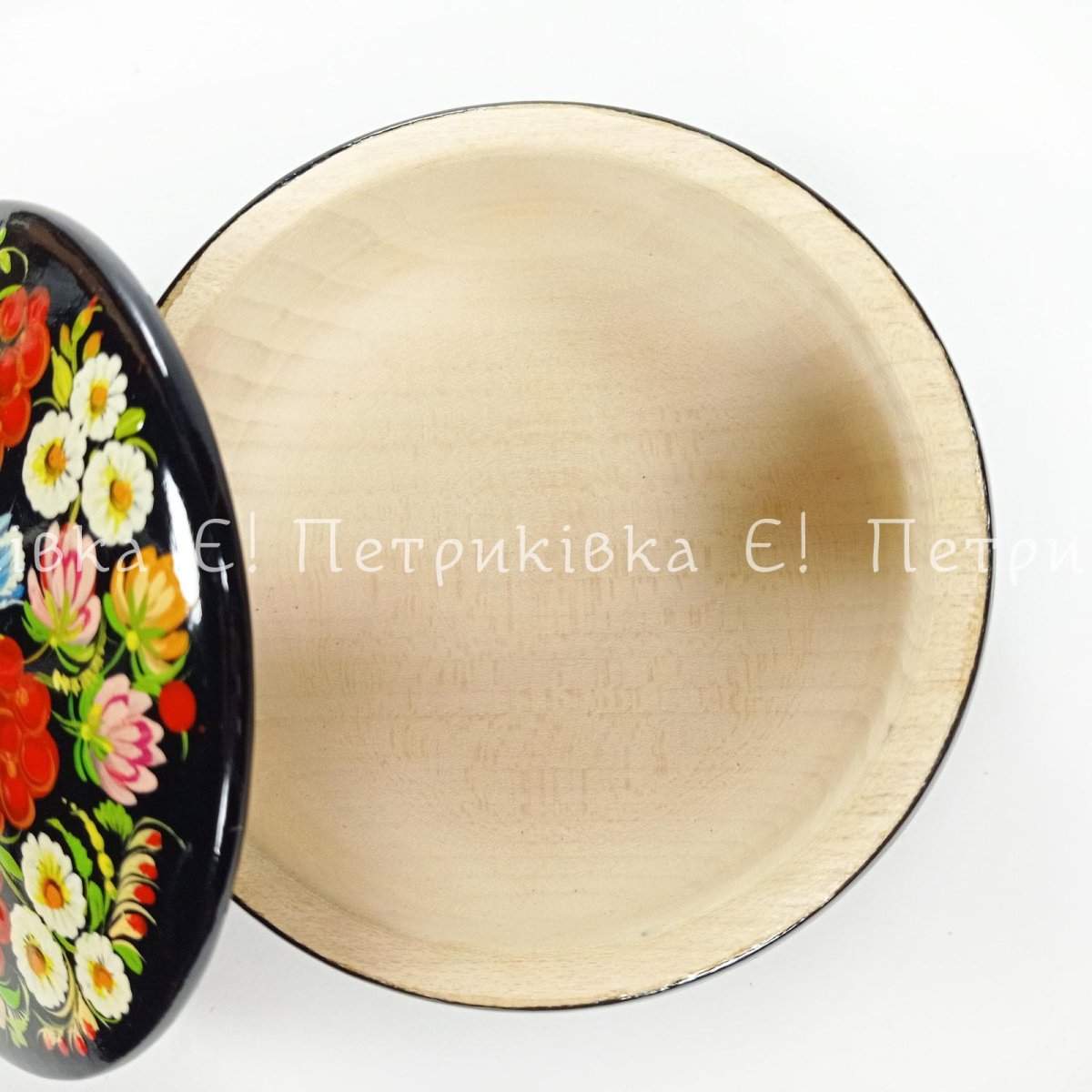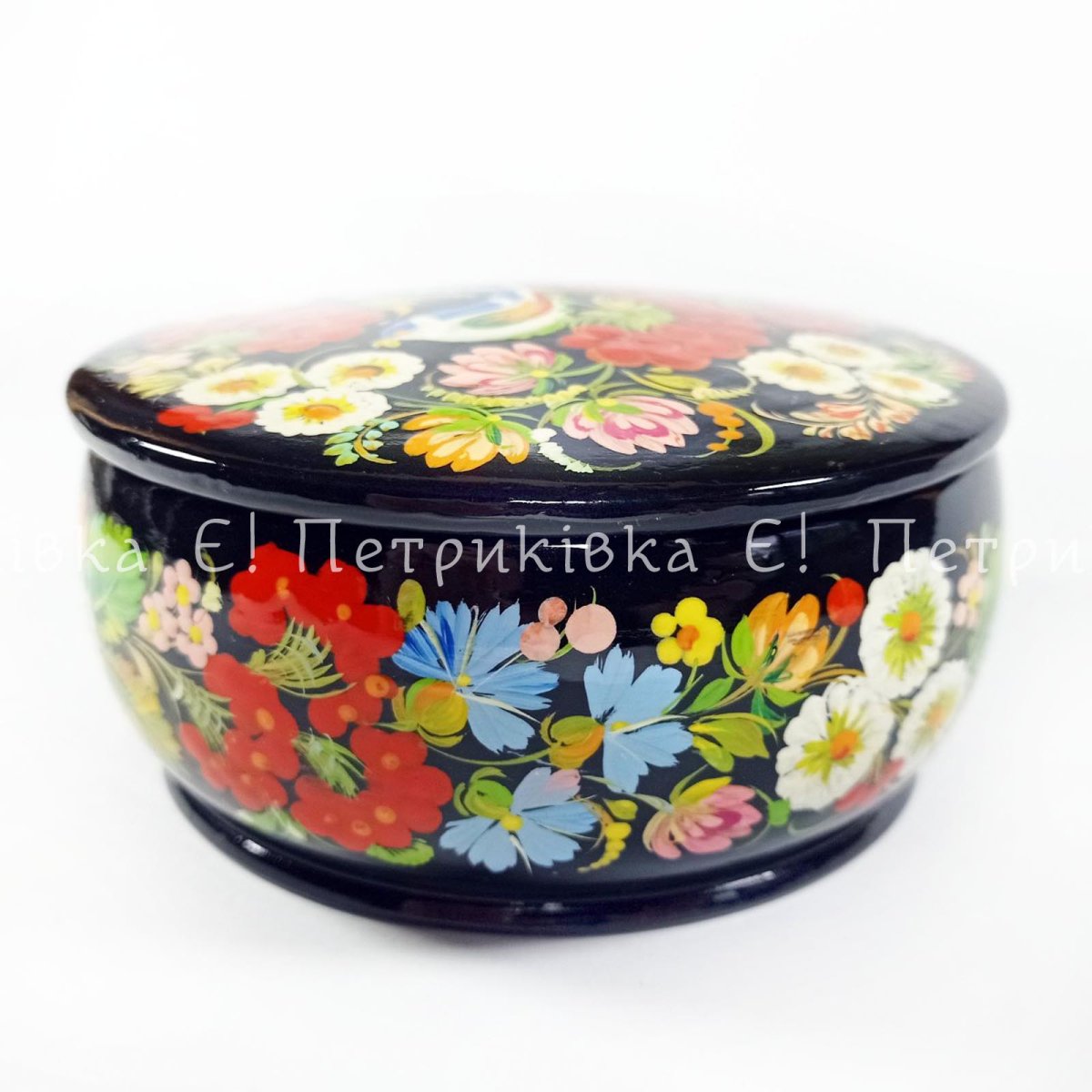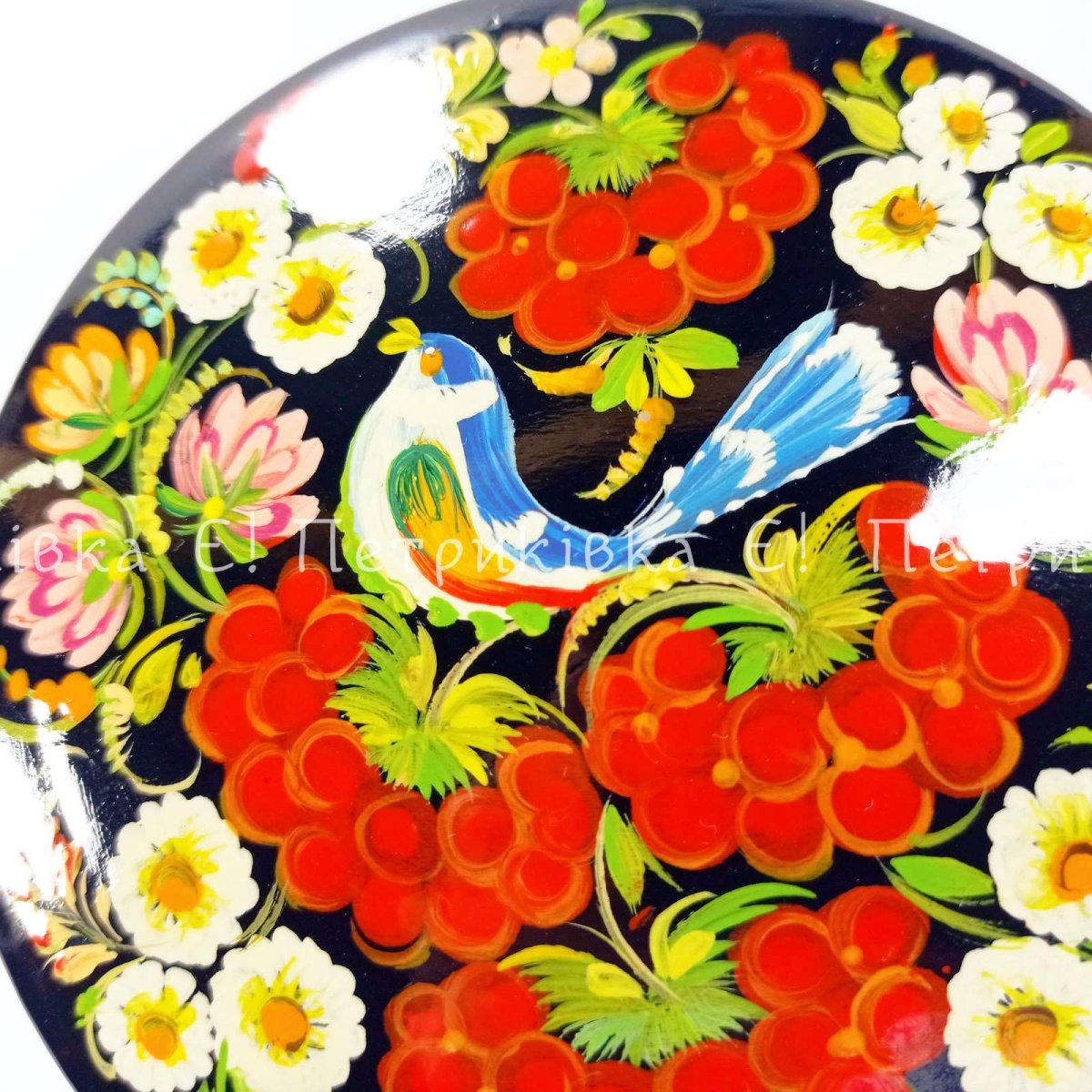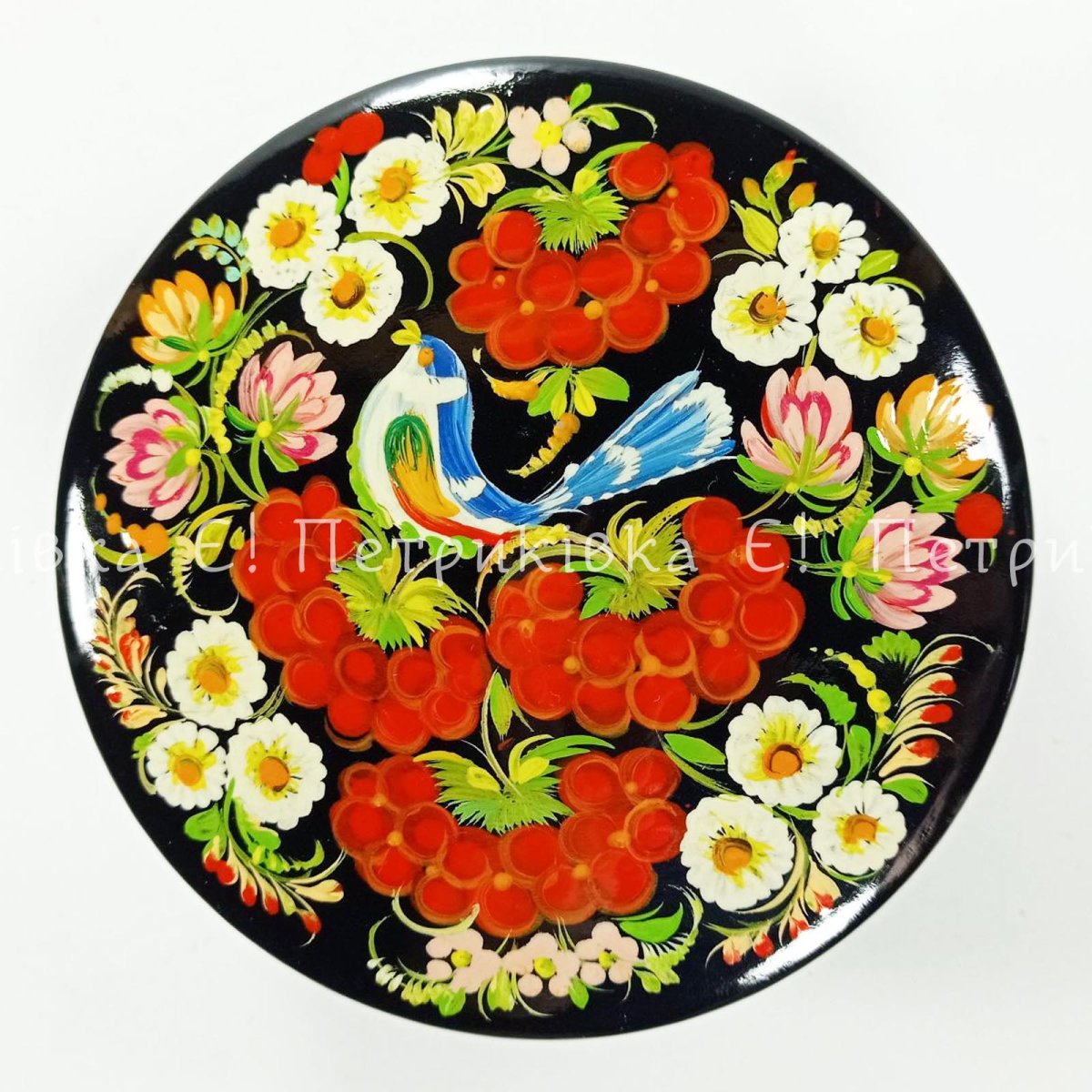 Шкатулка Петриківський розпис діаметр 11 см "Зозуля на калині" кругла