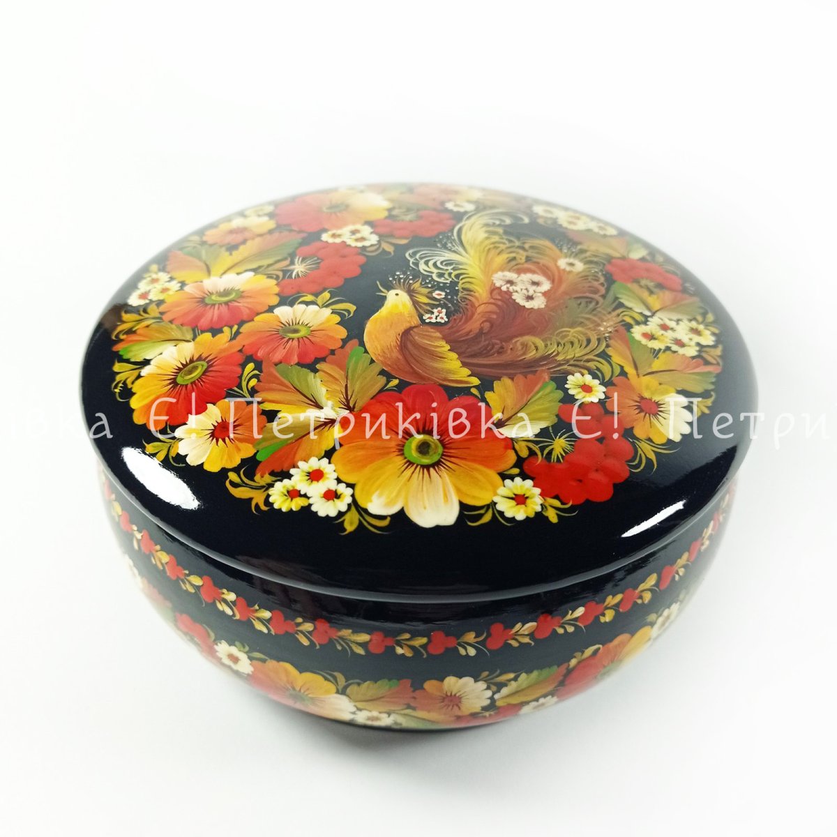 Шкатулка Петриківський розпис діаметр 12 см "Петриківська казка" кругла