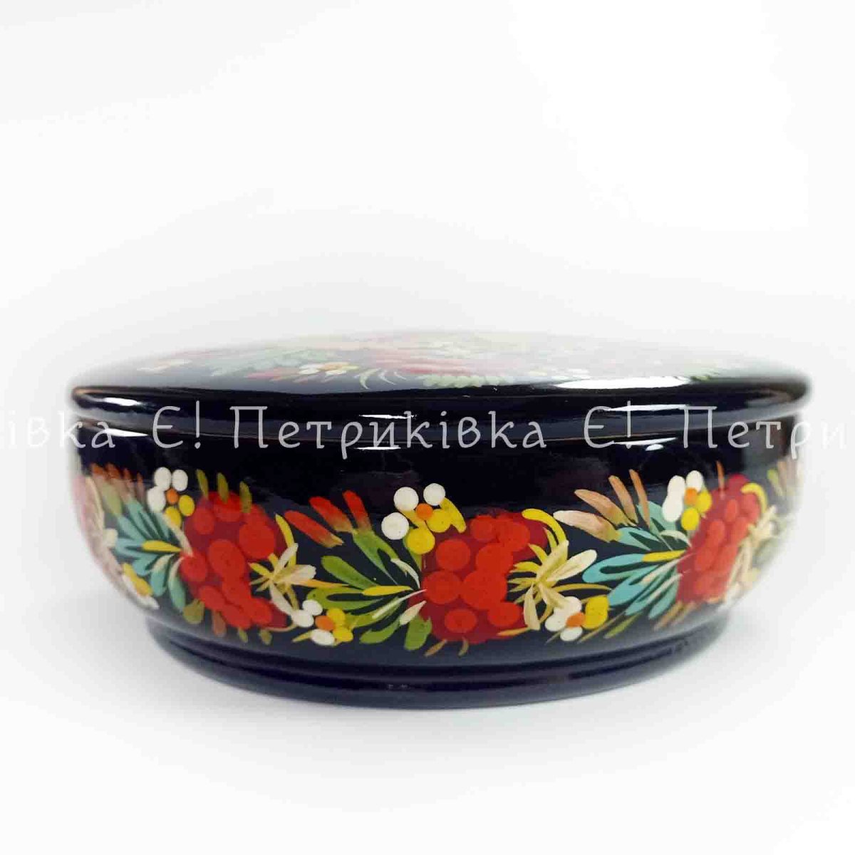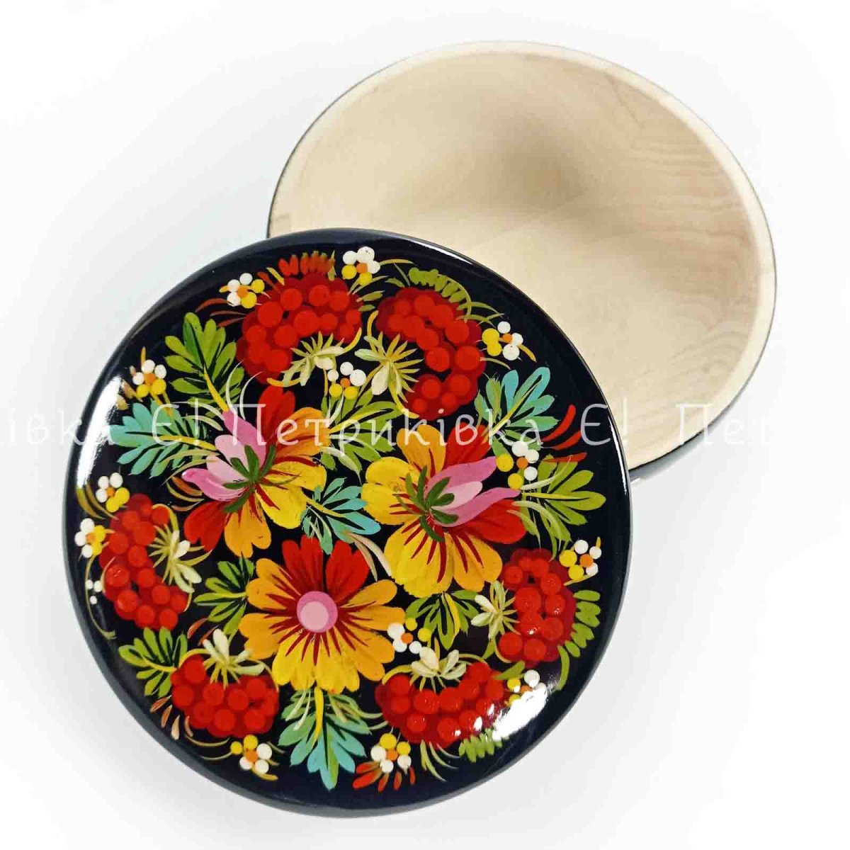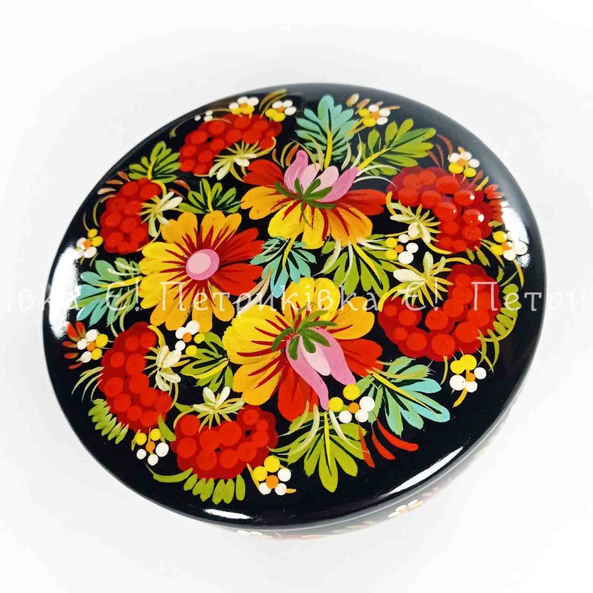 Шкатулка Петриківський розпис діаметр 13 см "Букет" кругла