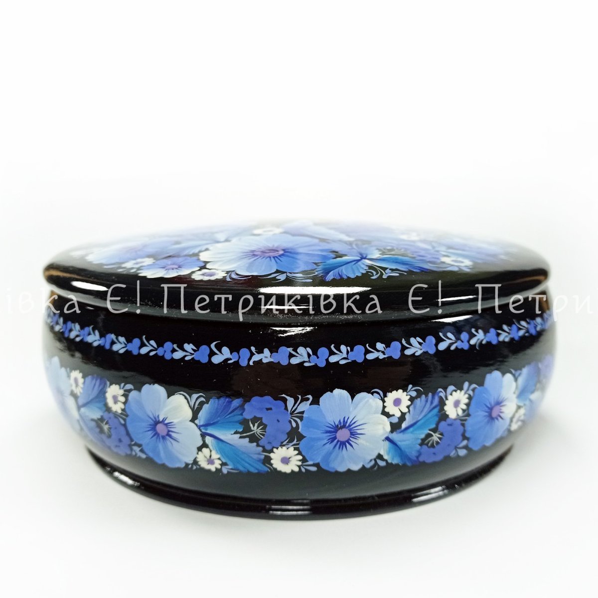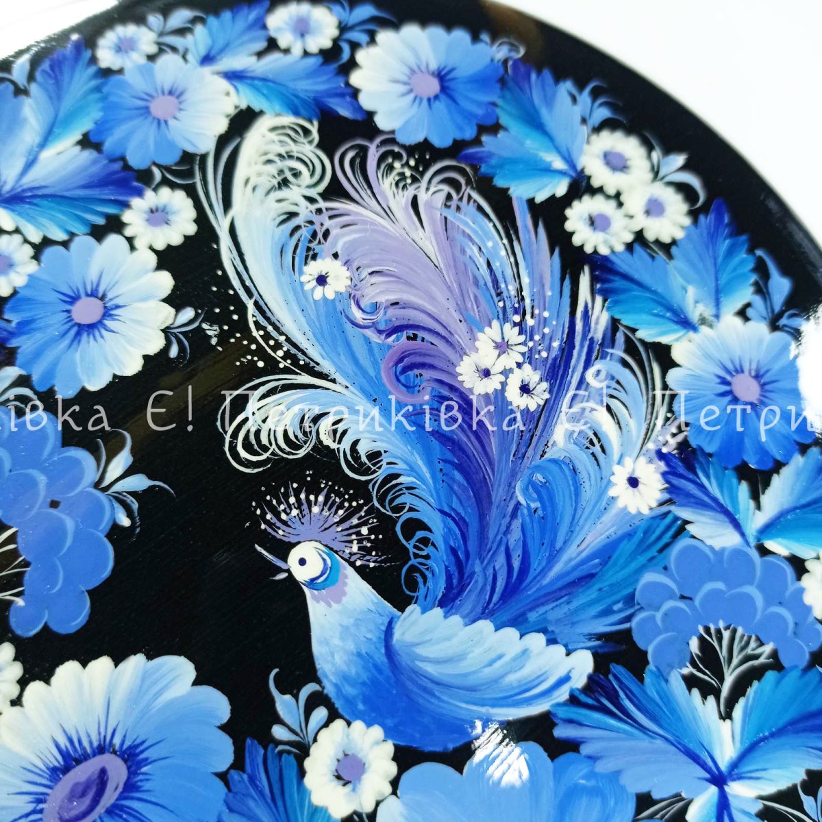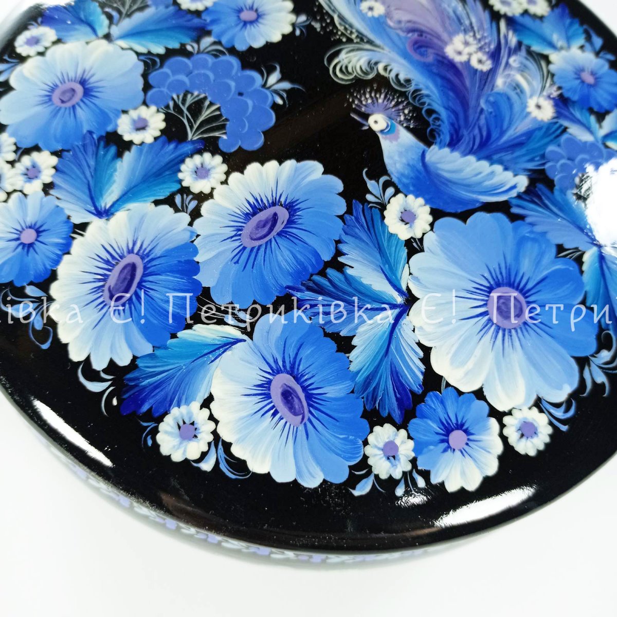 Шкатулка Петриківський розпис діаметр 15 см "Петриківська зимова Жар-Птиця" кругла