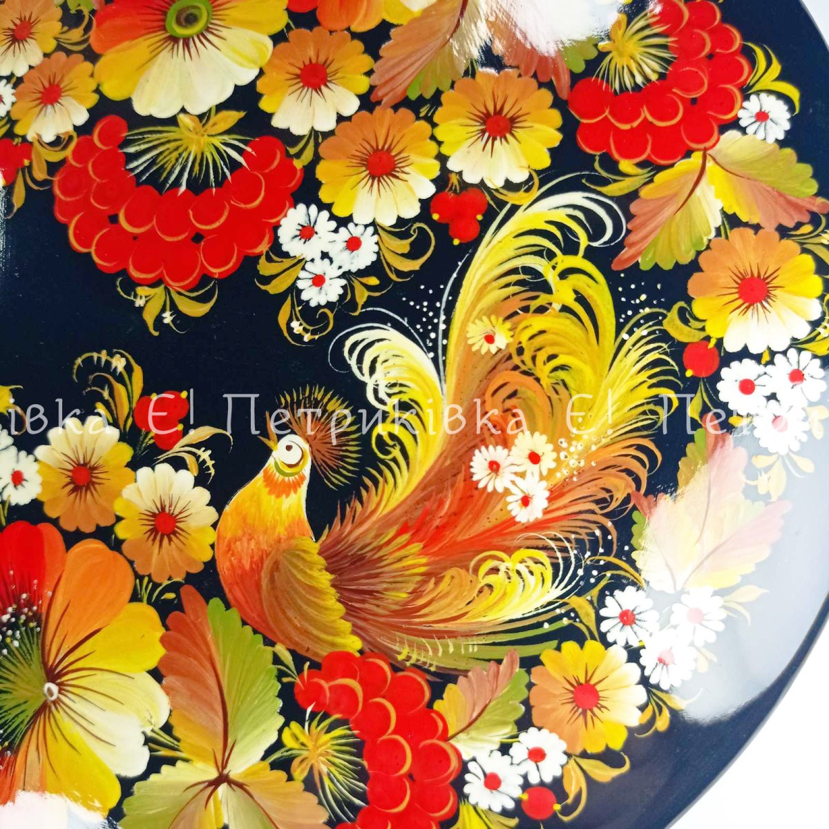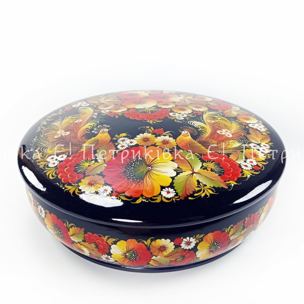 Шкатулка (рахва) Петриківський розпис діаметр 20 см "З двома Жар-птицями" кругла