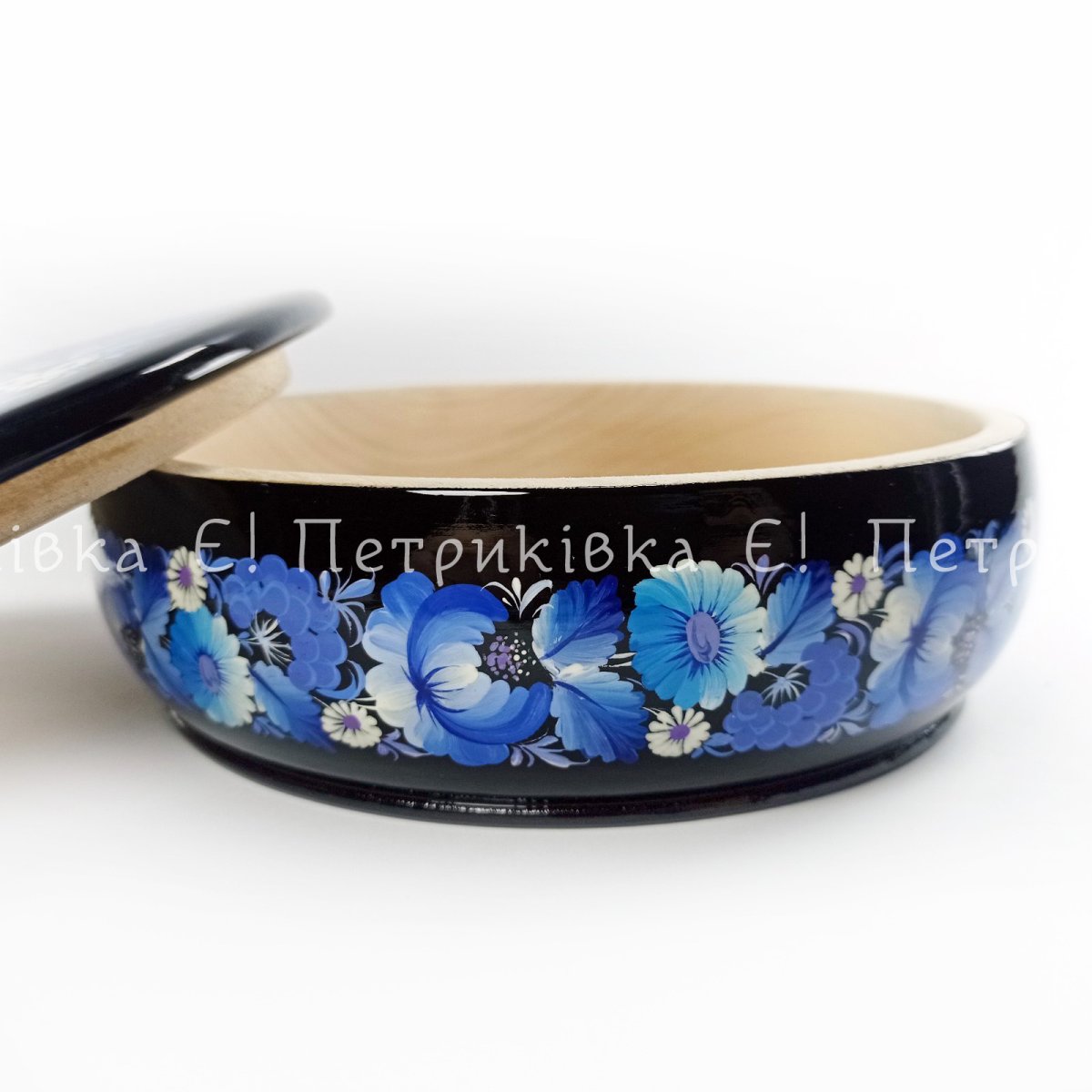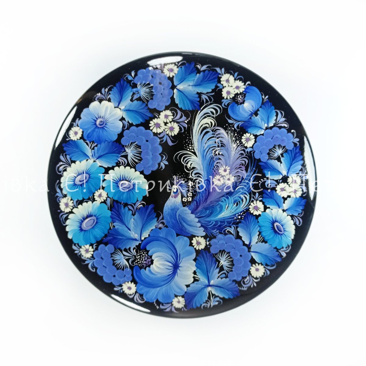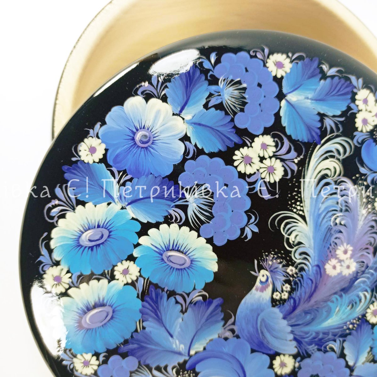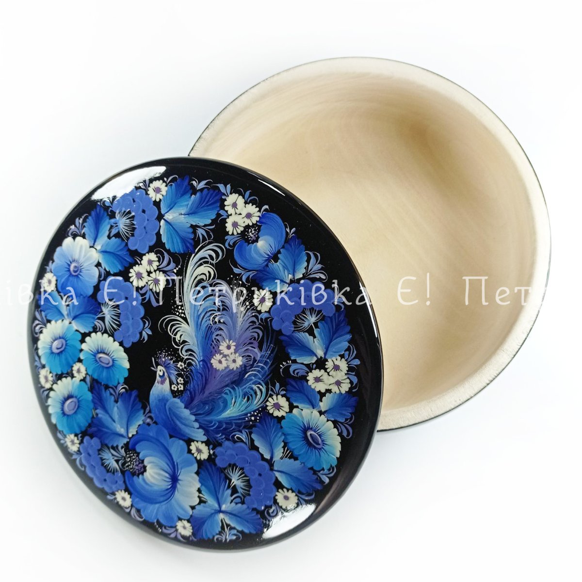 Скринька (рахва) (діаметр 17 см) з Петриківським розписом "Зимова Жар-Птиця"