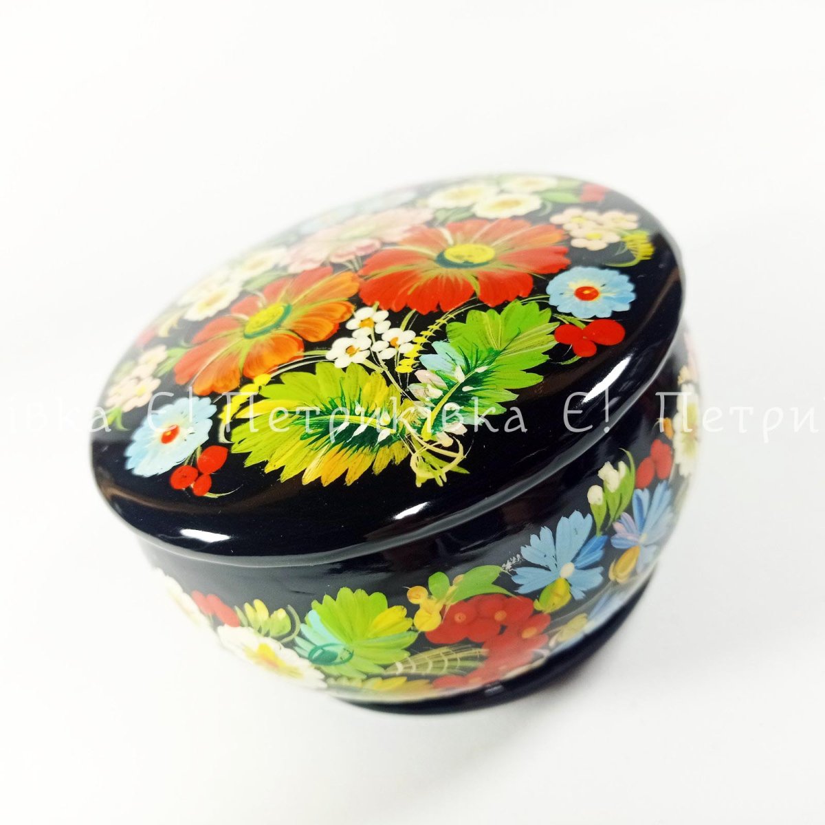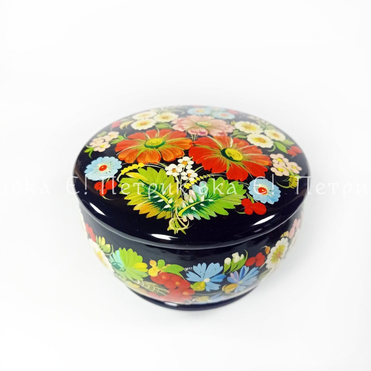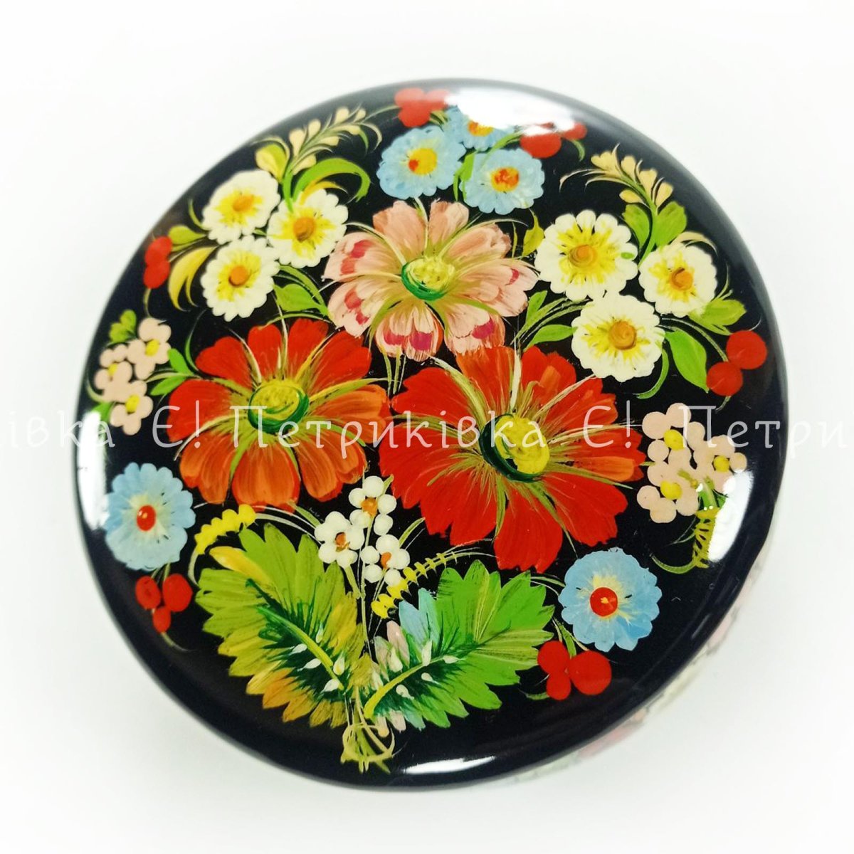 Шкатулка Петриківський розпис діаметр 9,5 см "Букет" кругла