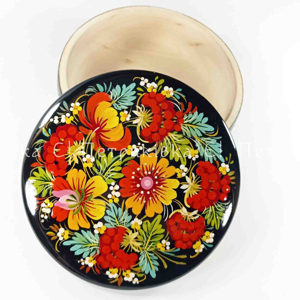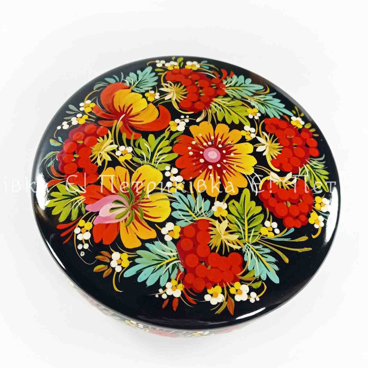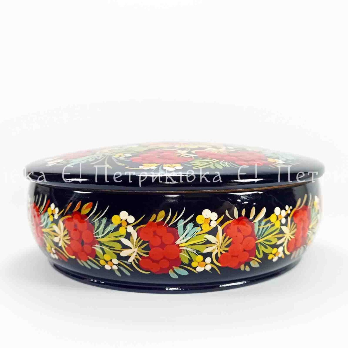 Скринька (рахва) (діаметр 17 см) з Петриківським розписом "Букет"
