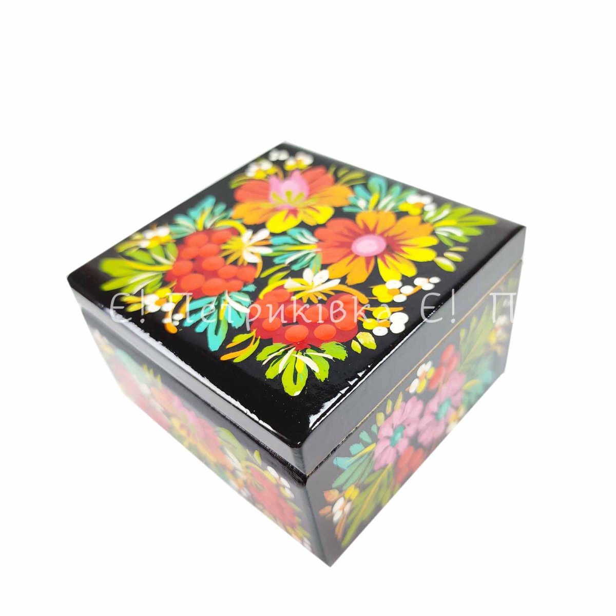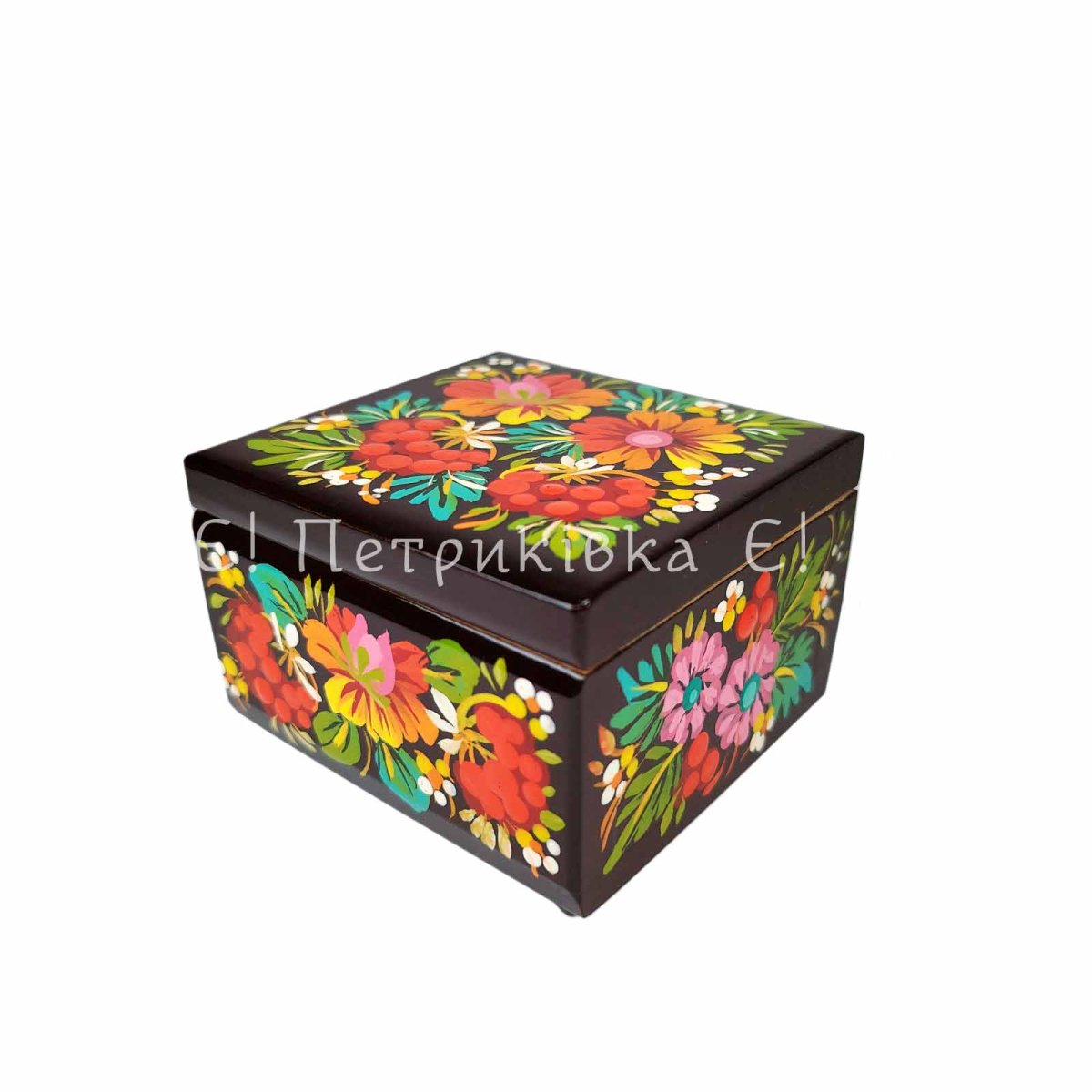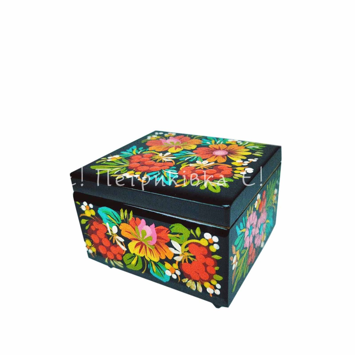 Скринька квадратна (8х8 см) з Петриківським розписом "Маленький букет"